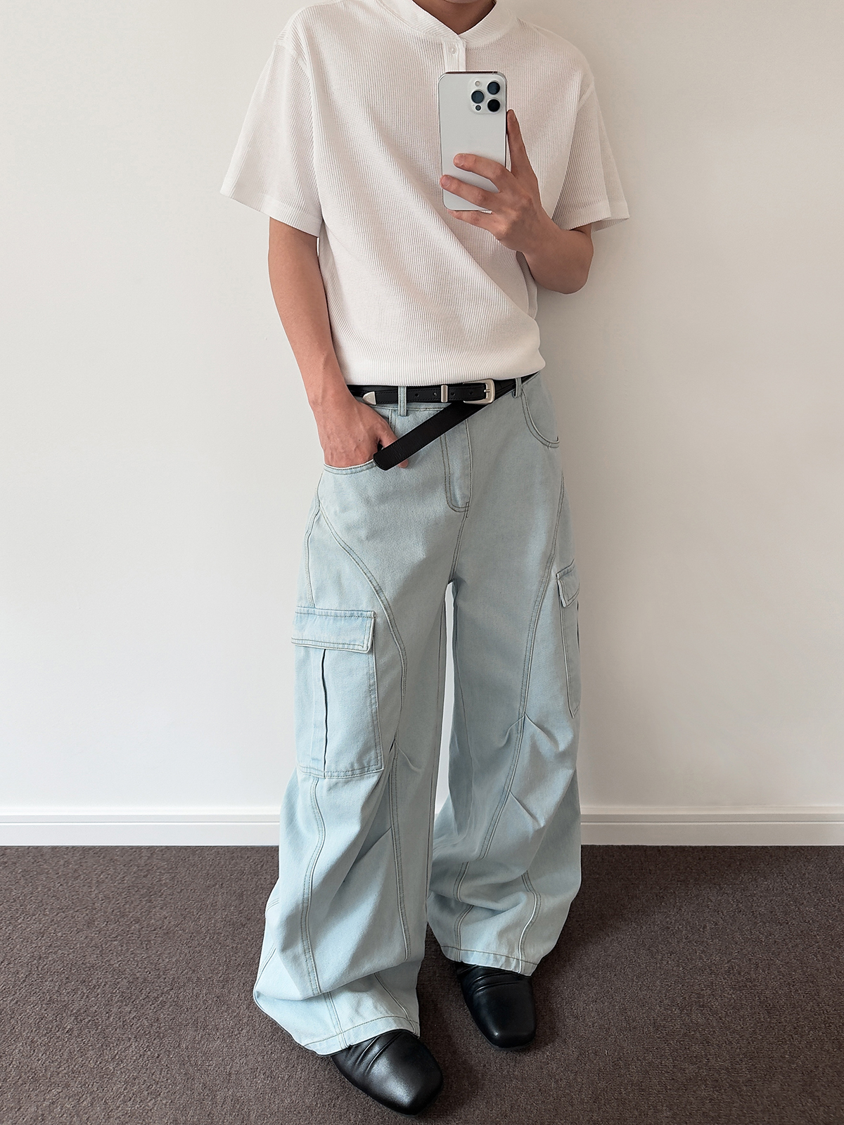 Elevate your wardrobe with our Light Blue Deconstructed Curved Knife Jeans, designed for both men and women. These vintage American style straight-leg pants offer a clean fit that flatters every body type, while the unique deconstructed detailing adds a modern twist to a classic look. Versatile and stylish, these jeans are perfect for any occasion pair them with a t-shirt for a casual outing or dress them up with a blazer. Don’t miss out on this essential addition to your closet; add to your cart today!