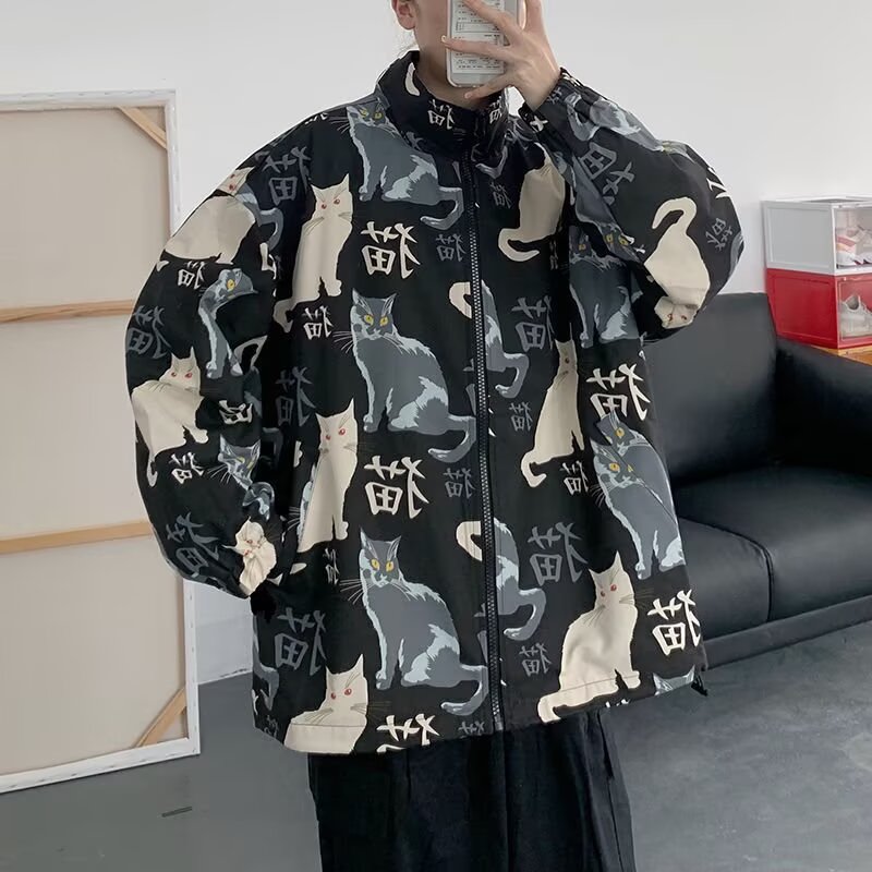 Men Oversized Cat Print Jacket Collar YouthKorean Punk Coat Spring, Autumn High-quality product featuring fall fashion, spring outfit, winter fits and more. Modern design that fits the latest trends. Premium materials ensure durability and comfort. Order now for special offers! Product designed with attention to every detail. Suitable for all occasions and personal styles.