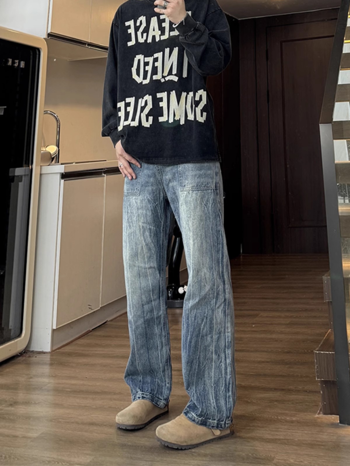Men Slim Fit Water Washed Cracked Denim Pants, Flattering Slightly Flared High-quality product featuring summer fits, winter fits, outfit inspo and more. Modern design that fits the latest trends. Premium materials ensure durability and comfort. Order now for special offers! Product designed with attention to every detail. Suitable for all occasions and personal styles.