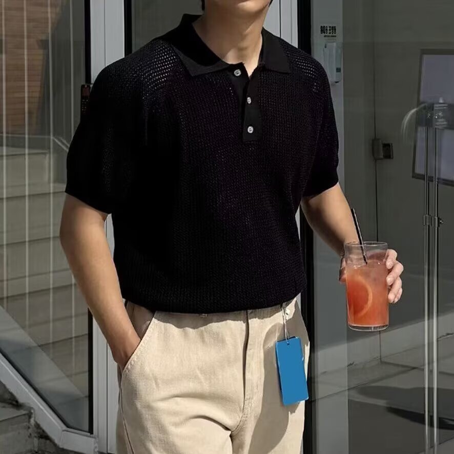 Men Summer Knitted Polo Shirt, Honeycomb Loose Fit Short Sleeve, Cool, Korean High-quality product featuring casual summer outfits, winter fits, fall fits and more. Modern design that fits the latest trends. Premium materials ensure durability and comfort. Order now for special offers! Product designed with attention to every detail. Suitable for all occasions and personal styles.