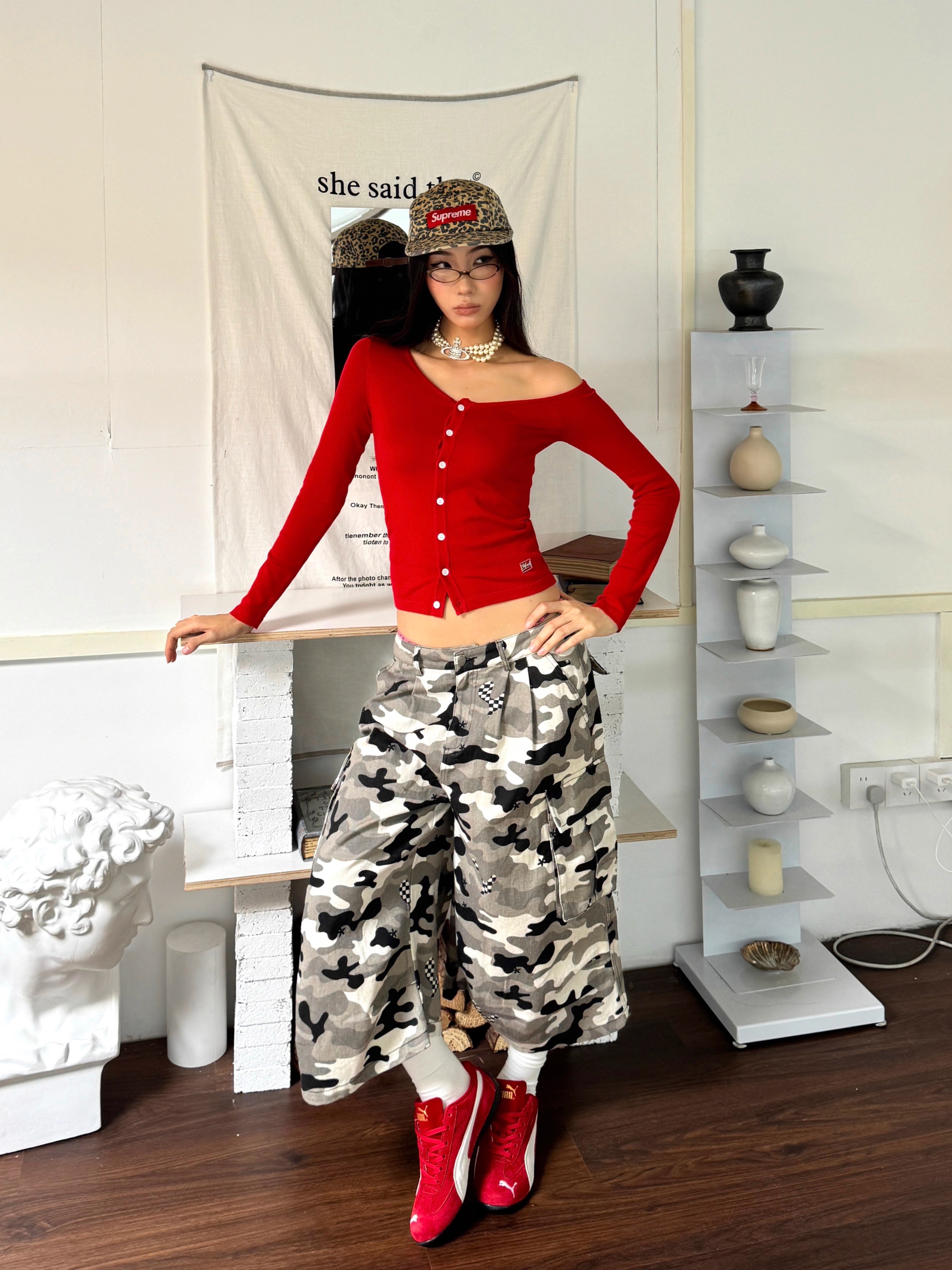 Off Shoulder Button Long Sleeve Knit Top Slim Fit, Thin Summer Shirt in High-quality product featuring winter fits, fall fits, outfit inspo and more. Modern design that fits the latest trends. Premium materials ensure durability and comfort. Order now for special offers! Product designed with attention to every detail. Suitable for all occasions and personal styles.