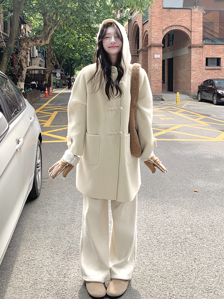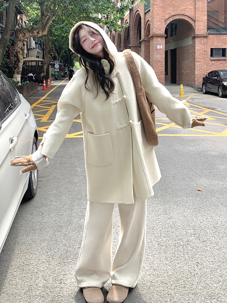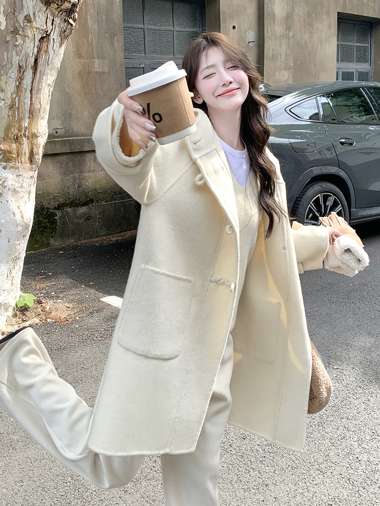 Off White Double Sided Cashmere Coat Horn Buttons Women Winter Korean Woolen Outerwear High-quality product featuring winter fits, outfit ideas winter, warm winter outfits and more. Modern design that fits the latest trends. Premium materials ensure durability and comfort. Order now for special offers! Product designed with attention to every detail. Suitable for all occasions and personal styles.