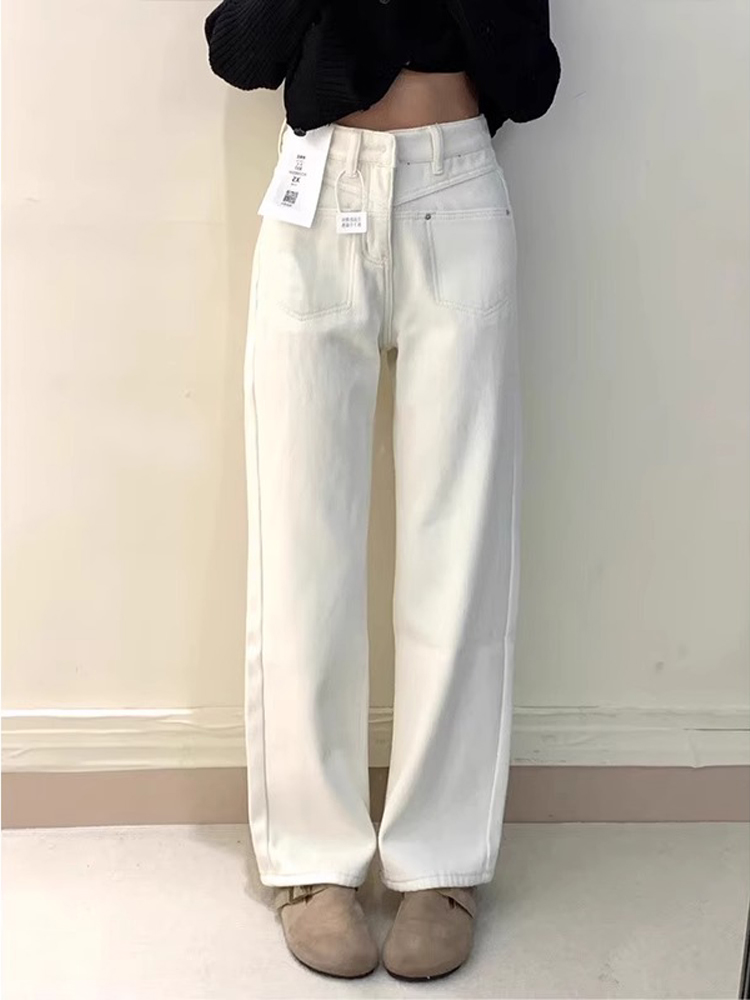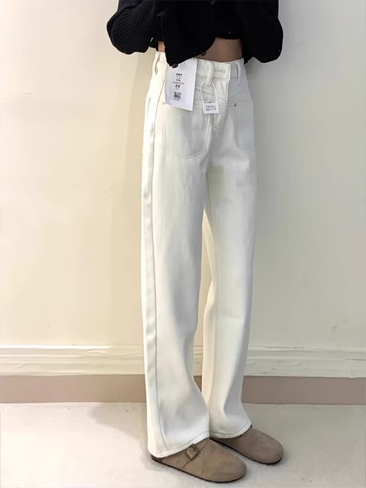 Off White High Waisted Fleece Narrow Wide Leg Jeans Women Petite Sizes Autumn Winter Straight Pants High-quality product featuring winter fits, fall outfits women, fall fits and more. Modern design that fits the latest trends. Premium materials ensure durability and comfort. Order now for special offers! Product designed with attention to every detail. Suitable for all occasions and personal styles.