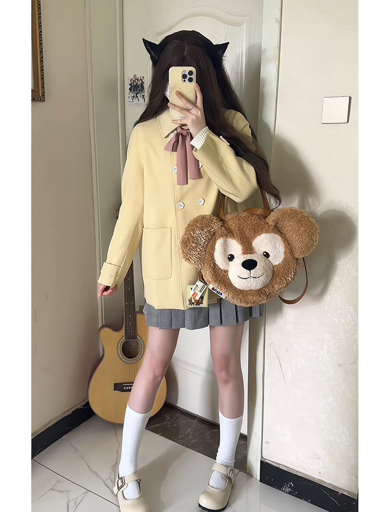 Step into the season with our Petite Magical Girl Pudding Bear JK Uniform Trench Coat, designed for a youthful early autumn college style. This short version coat features a playful yet sophisticated silhouette, perfect for layering over your favorite outfits. With its charming details and cozy fit, it offers both comfort and a touch of whimsy, making it an essential addition to your wardrobe. Don’t miss out on this fashionable staple add it to your cart today and elevate your style!
