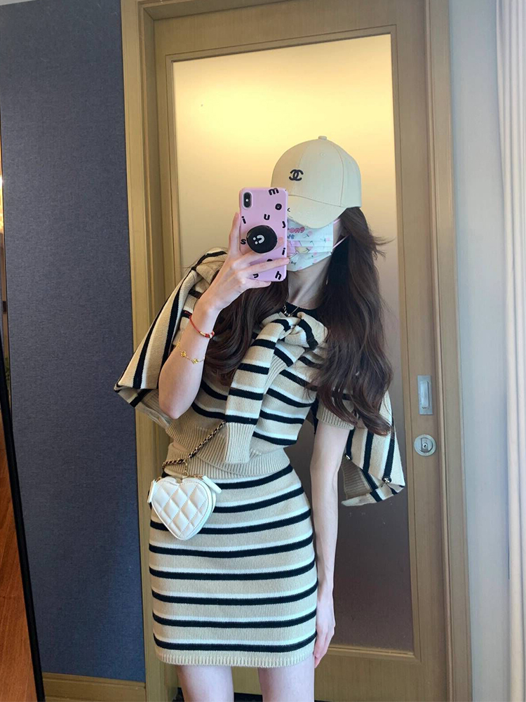 Petite Striped Knitted Cardigan Set Women, Short Sleeve Top, Skirt Two Autumn Outfit, Fall High-quality product featuring fall fits, fall fashion, outfit inspo fall and more. Modern design that fits the latest trends. Premium materials ensure durability and comfort. Order now for special offers! Product designed with attention to every detail. Suitable for all occasions and personal styles.