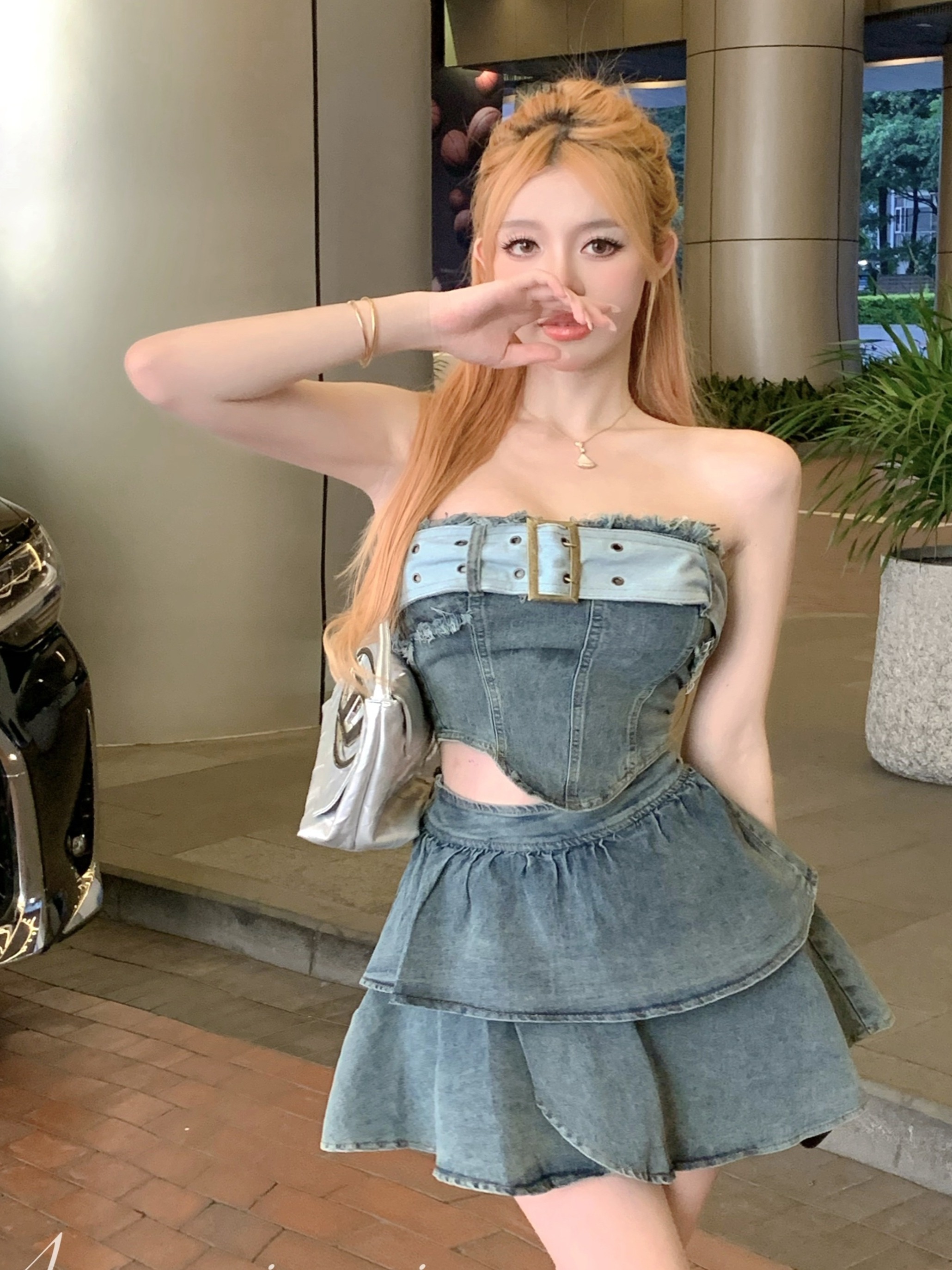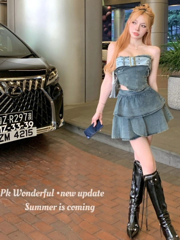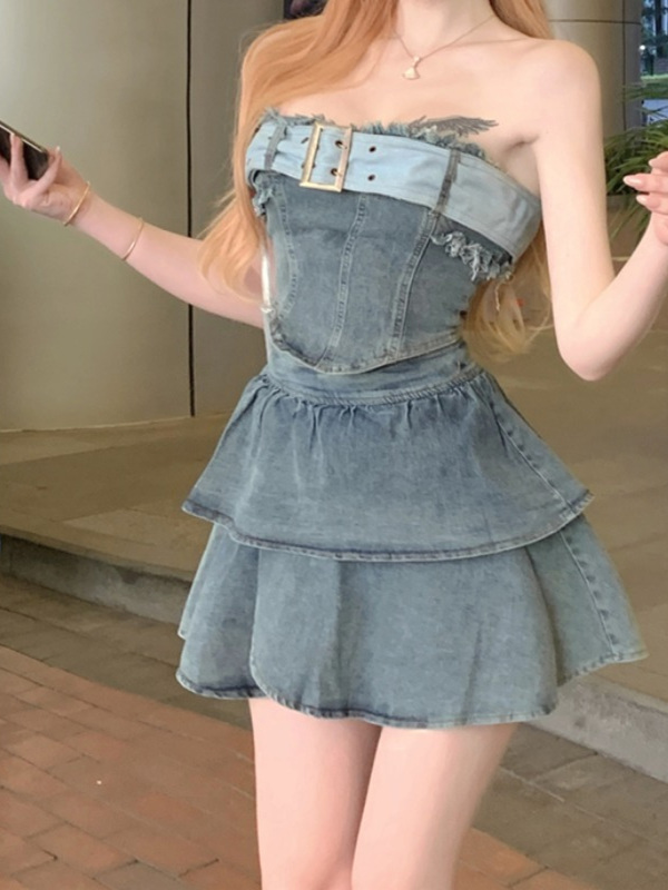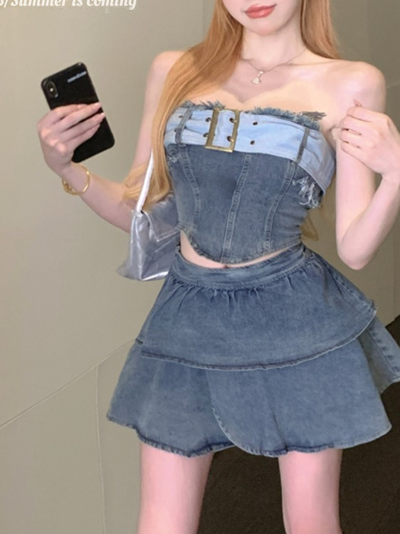 Petite Summer Outfit Set Strapless Denim Mini Skirt Two Ensemble High-quality product featuring skirt outfits, going out outfits, casual summer outfits and more. Modern design that fits the latest trends. Premium materials ensure durability and comfort. Order now for special offers! Product designed with attention to every detail. Suitable for all occasions and personal styles.