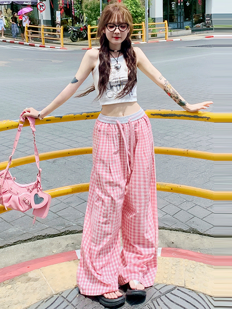 Pink Plaid Casual Summer Pants Women, Straight Leg Slim Fit Wide Leg, Dopamine High-quality product featuring casual summer outfits, spring outfit, casual outfits and more. Modern design that fits the latest trends. Premium materials ensure durability and comfort. Order now for special offers! Product designed with attention to every detail. Suitable for all occasions and personal styles.