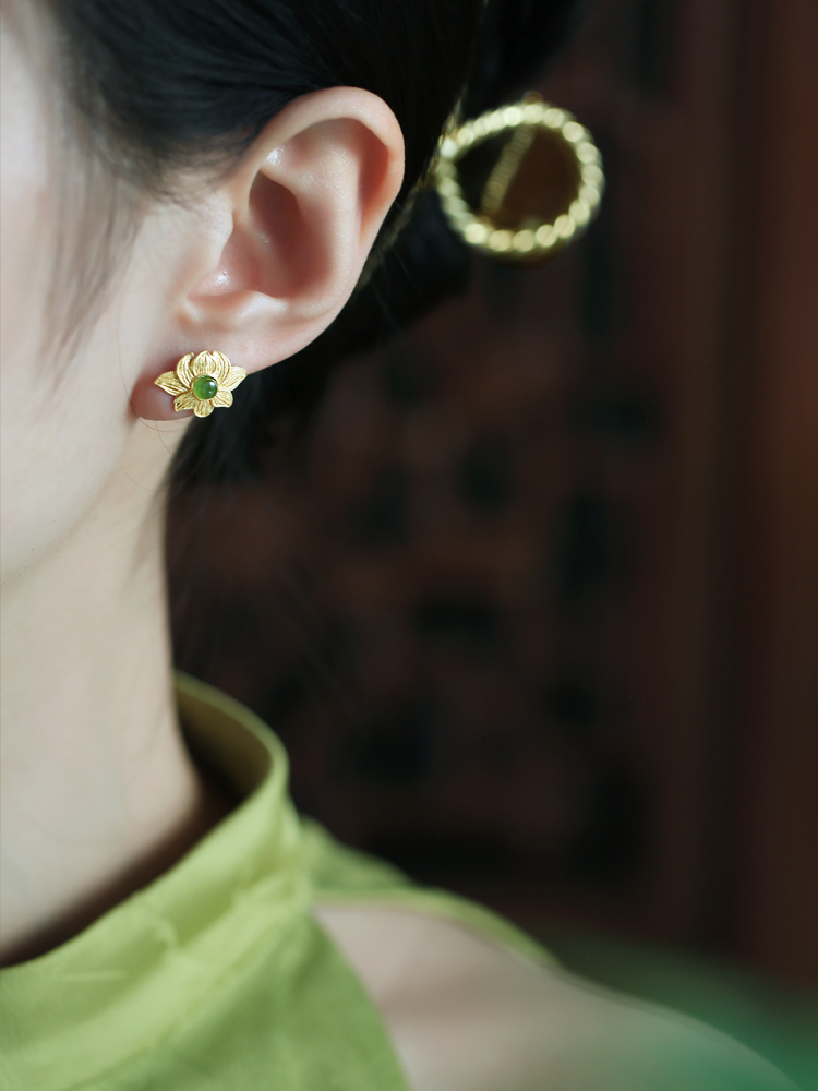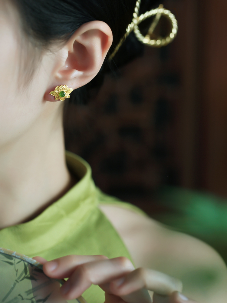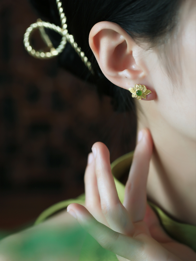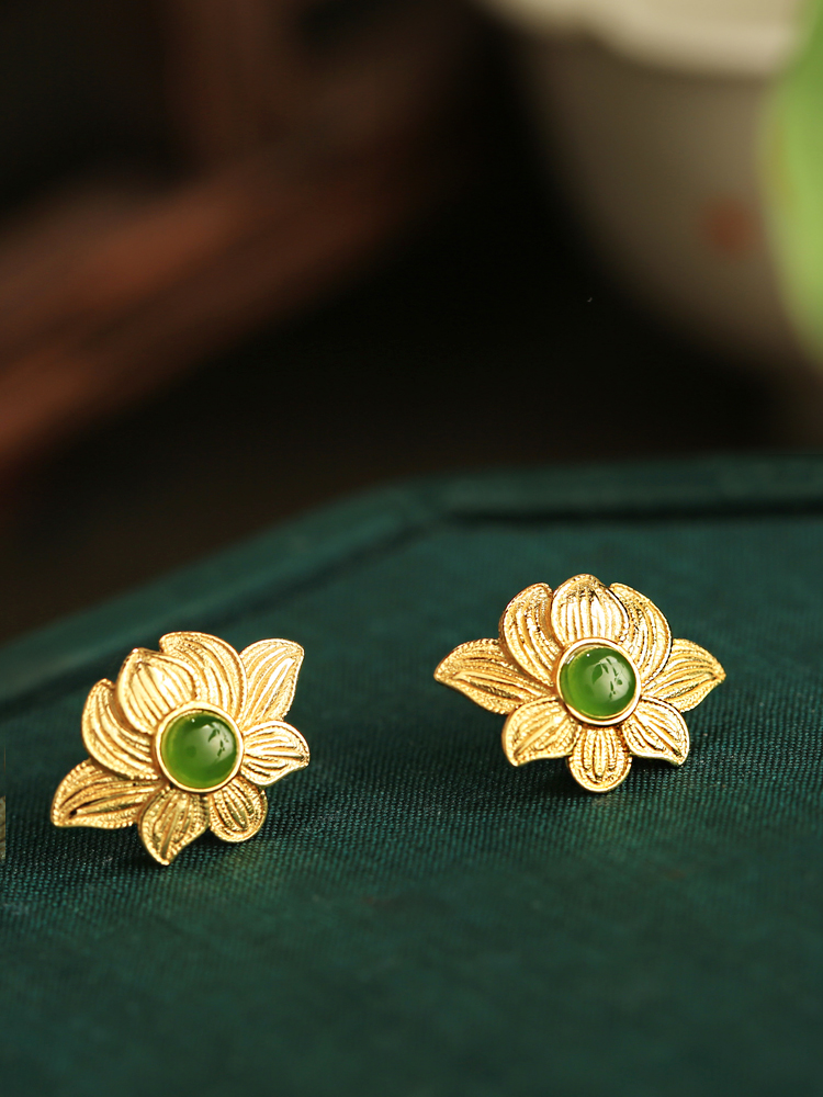 Pure Silver Lotus Flower Earrings Women Wind Jadeite High-quality product featuring spring outfits, spring outfit, western outfits women and more. Modern design that fits the latest trends. Premium materials ensure durability and comfort. Order now for special offers! Product designed with attention to every detail. Suitable for all occasions and personal styles.
