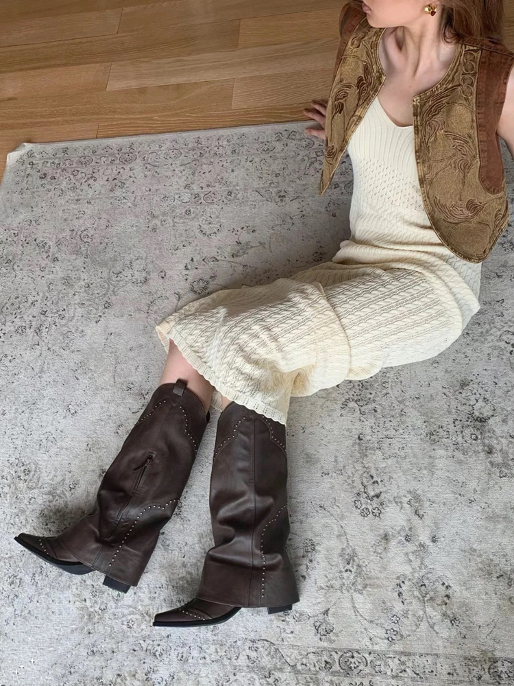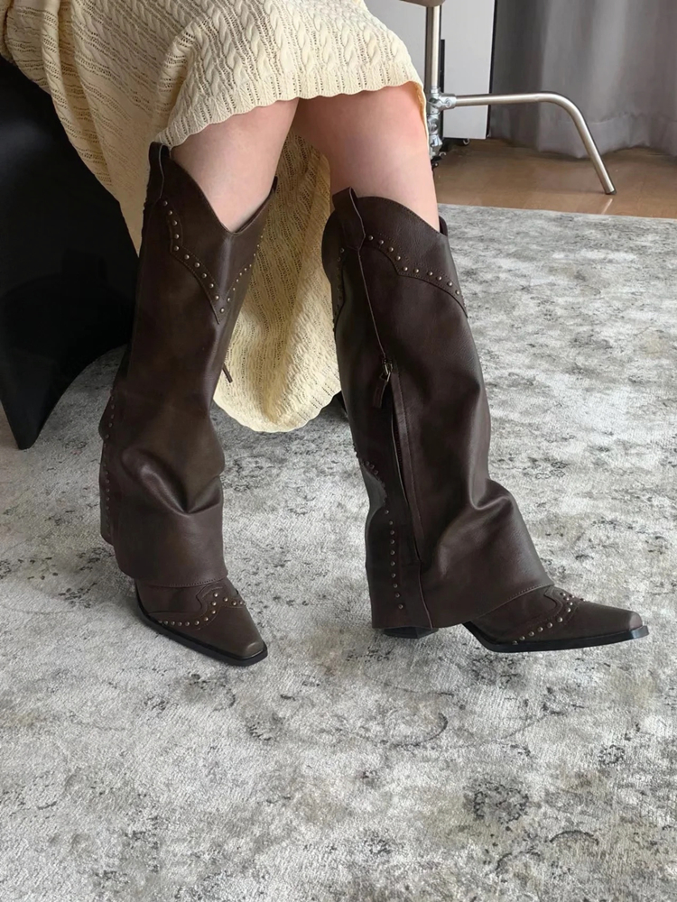 Retro Brown Studded Ankle Boots Women V Shaped Chunky Heels, Cowboy, Autumn High-quality product featuring fall outfits women, fall fits, western outfits women and more. Modern design that fits the latest trends. Premium materials ensure durability and comfort. Order now for special offers! Product designed with attention to every detail. Suitable for all occasions and personal styles.