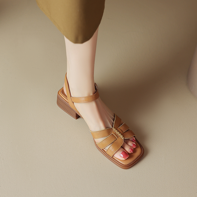 Retro Chunky Heeled Open Toe Sals Women Summer Square Toe, Mid Heel, Genuine Leather Roman Shoes, Size 41 High-quality product featuring spring outfit, coquette outfit, spring outfits and more. Modern design that fits the latest trends. Premium materials ensure durability and comfort. Order now for special offers! Product designed with attention to every detail. Suitable for all occasions and personal styles.