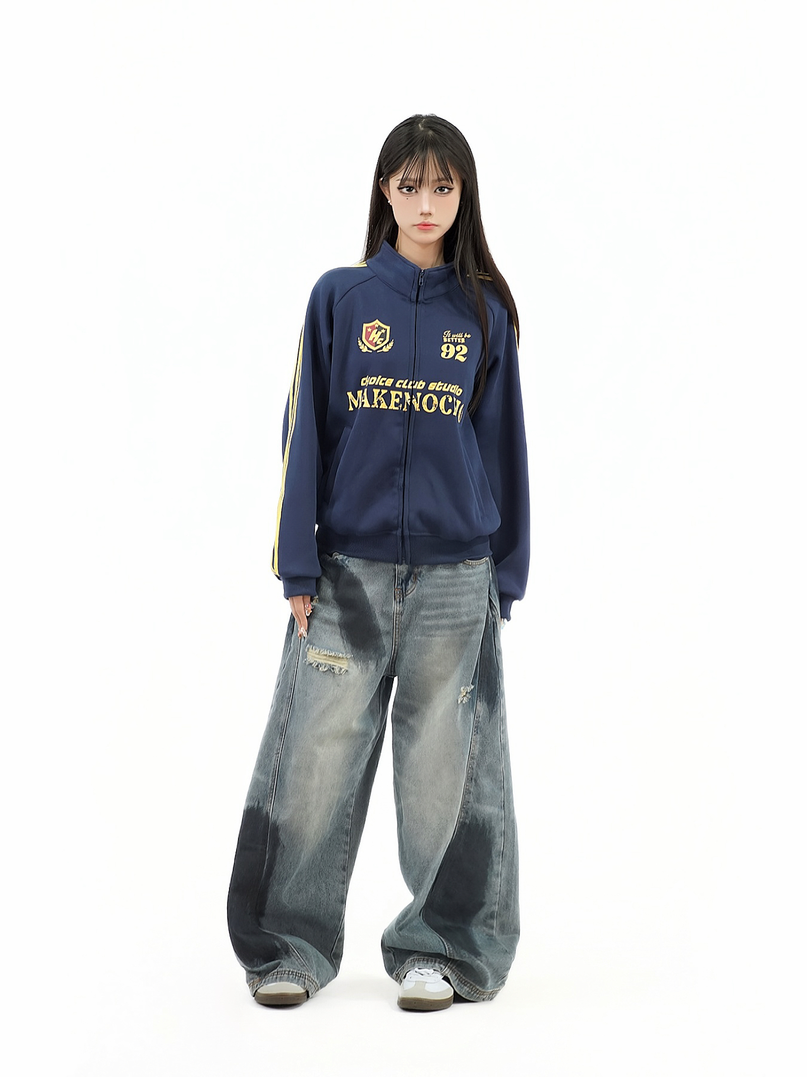 Elevate your couple’s wardrobe with our Retro Distressed Stand Collar Zip-Up Cardigan Jacket, designed in a classic American college style that exudes casual versatility. This jacket features a relaxed fit and stylish distressed details, making it perfect for layering or wearing on its own. Crafted for comfort and chic appeal, it’s the ideal choice for any casual outing or cozy night in. Don’t miss out on this timeless piece add it to your cart and step out in style!