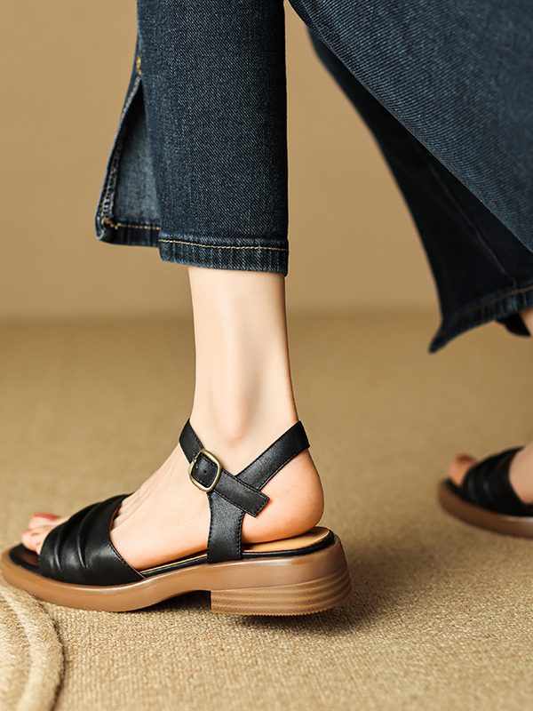 Been using Retro One Strap Flat Open Toe Sals Women, Genuine Leather Casual Roman Shoes, Thick Soled Peep Toe Summer daily and I appreciate— no harsh smell out of the box, Worth it for everyday use without fuss.