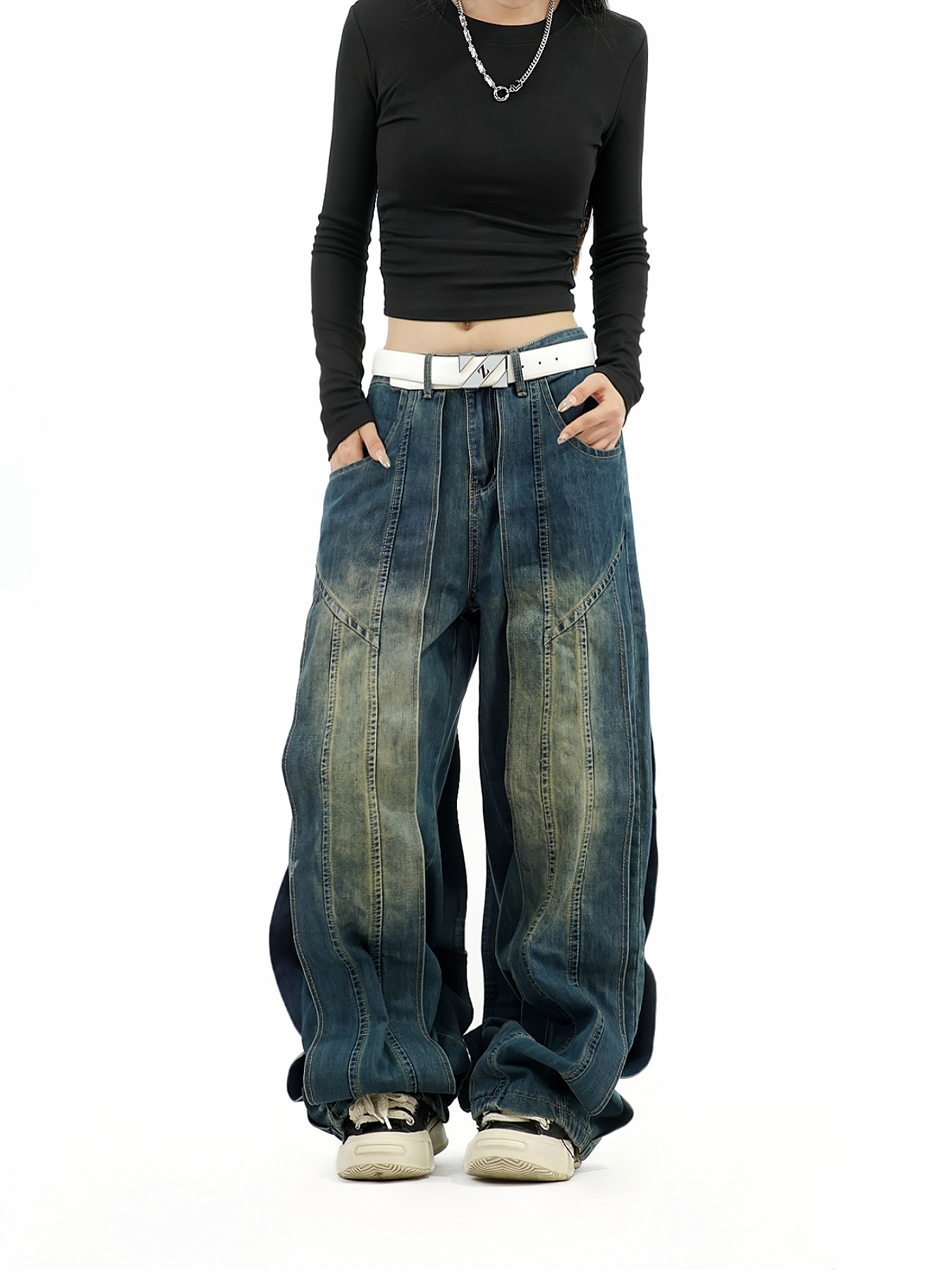 Retro Patchwork Denim Pants Unisex Loose Wide Leg in High-quality product featuring outfit inspo, fall fits, outfit ideas and more. Modern design that fits the latest trends. Premium materials ensure durability and comfort. Order now for special offers! Product designed with attention to every detail. Suitable for all occasions and personal styles.