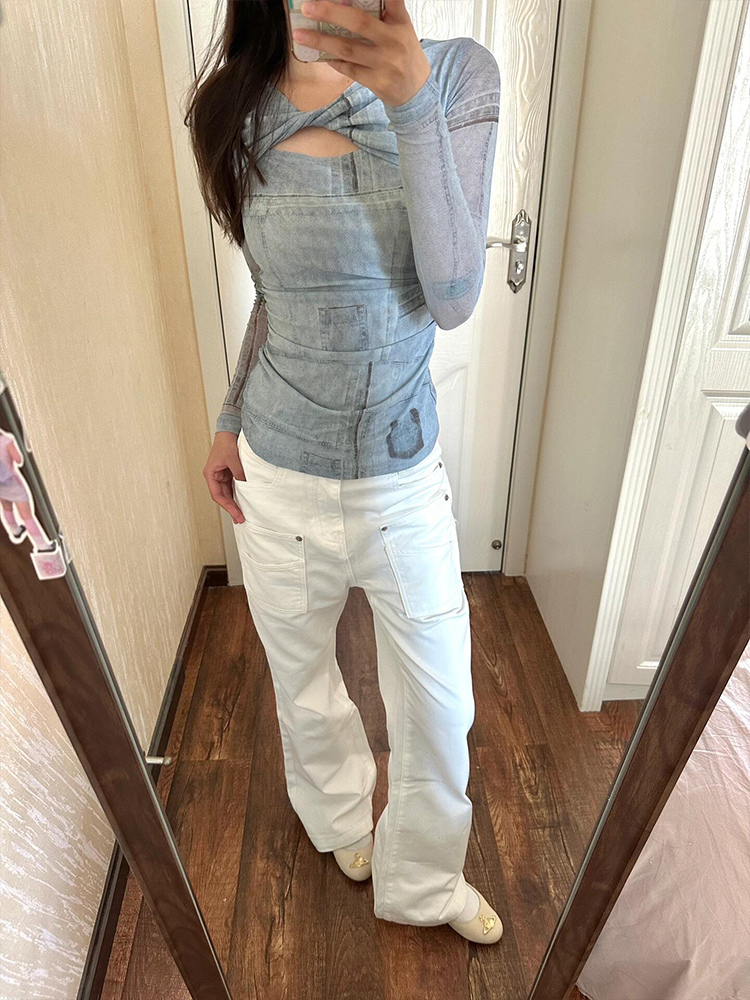 Hollow Tie Dye Knotted Long Sleeve Eccentric Top Women High-quality product featuring jigsaw costume women, hoco dresses, coquette outfit and more. Modern design that fits the latest trends. Premium materials ensure durability and comfort. Order now for special offers! Product designed with attention to every detail. Suitable for all occasions and personal styles.