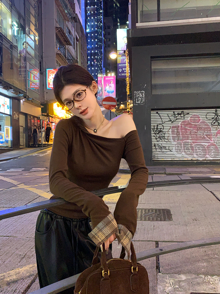 Off Shoulder Plaid Patchwork Slim Fit Long Sleeve Top Women Y2K High-quality product featuring pumpkin patch outfit women, fall outfits women, fall clothing trends 2025 and more. Modern design that fits the latest trends. Premium materials ensure durability and comfort. Order now for special offers! Product designed with attention to every detail. Suitable for all occasions and personal styles.