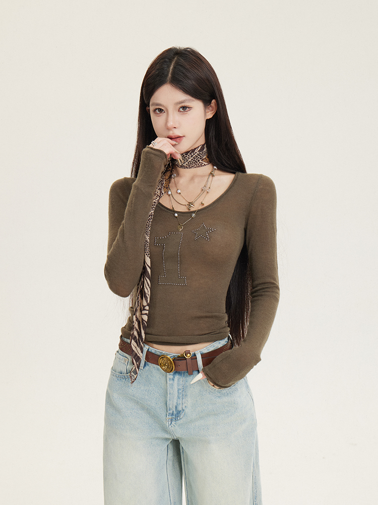 Sheer Knitted Base Layer Top Women Rivet Big Neck, Slim Fit, Long Sleeves Y2K High-quality product featuring work outfits women, coquette outfit, winter fits and more. Modern design that fits the latest trends. Premium materials ensure durability and comfort. Order now for special offers! Product designed with attention to every detail. Suitable for all occasions and personal styles.