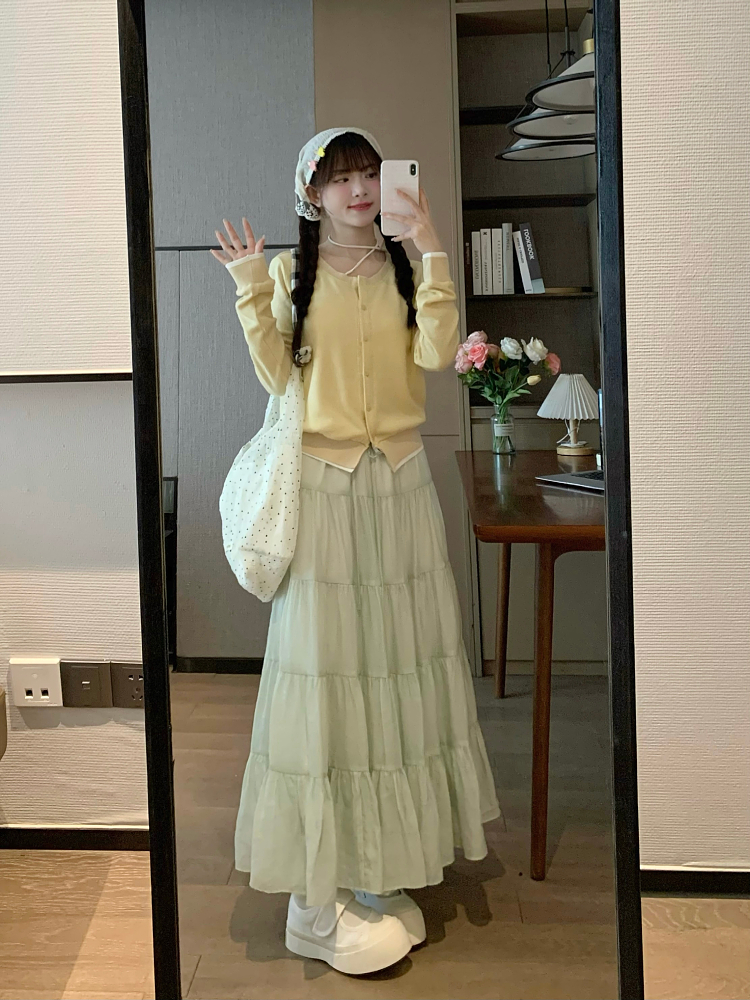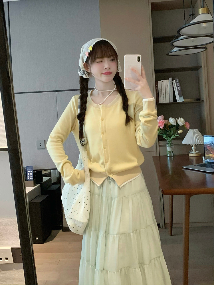 Soft Milk Yellow Cardigan Top Set Women Sweet Korean Two spring outfit a Cozy, Look High-quality product featuring spring outfits, warm winter outfits, cute winter outfits and more. Modern design that fits the latest trends. Premium materials ensure durability and comfort. Order now for special offers! Product designed with attention to every detail. Suitable for all occasions and personal styles.