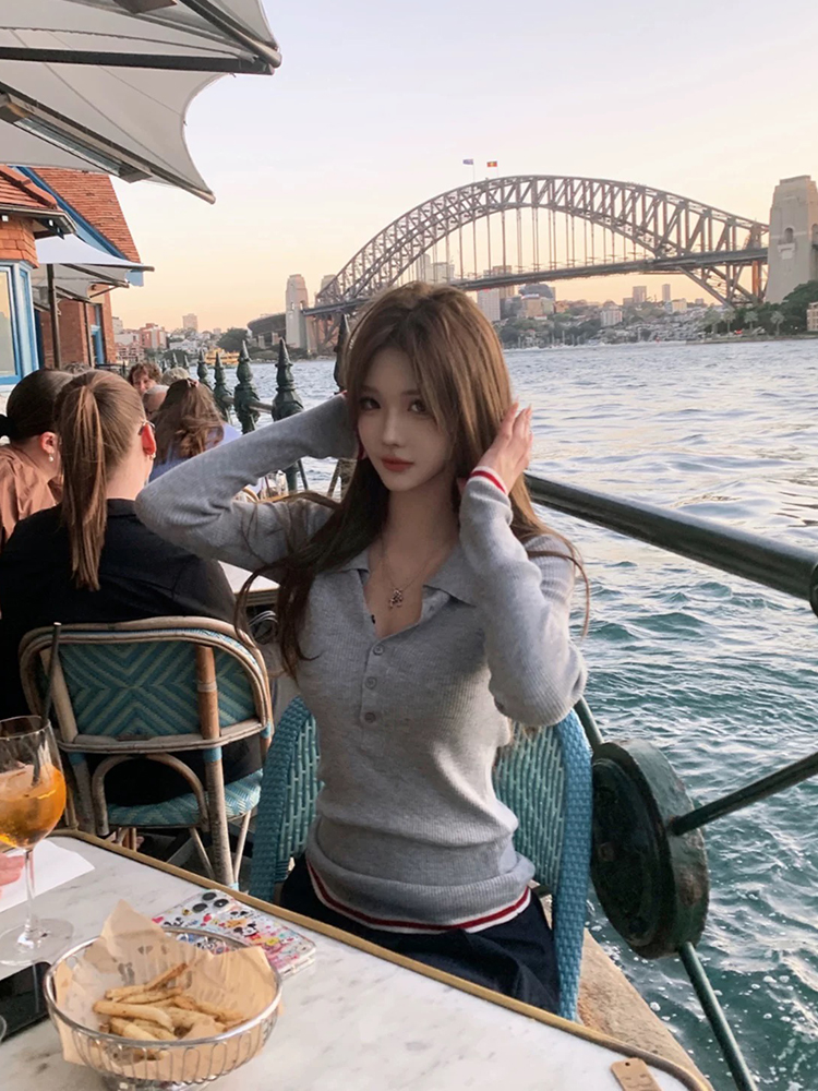 Gray Knitted Long Sleeve Slim Fit Polo Collar Top Spring, Y2K pired High-quality product featuring spring outfit, winter fits, spring outfits and more. Modern design that fits the latest trends. Premium materials ensure durability and comfort. Order now for special offers! Product designed with attention to every detail. Suitable for all occasions and personal styles.