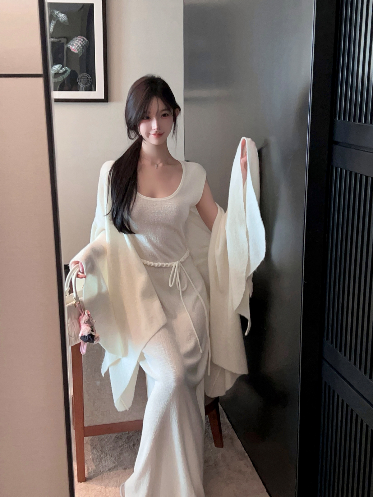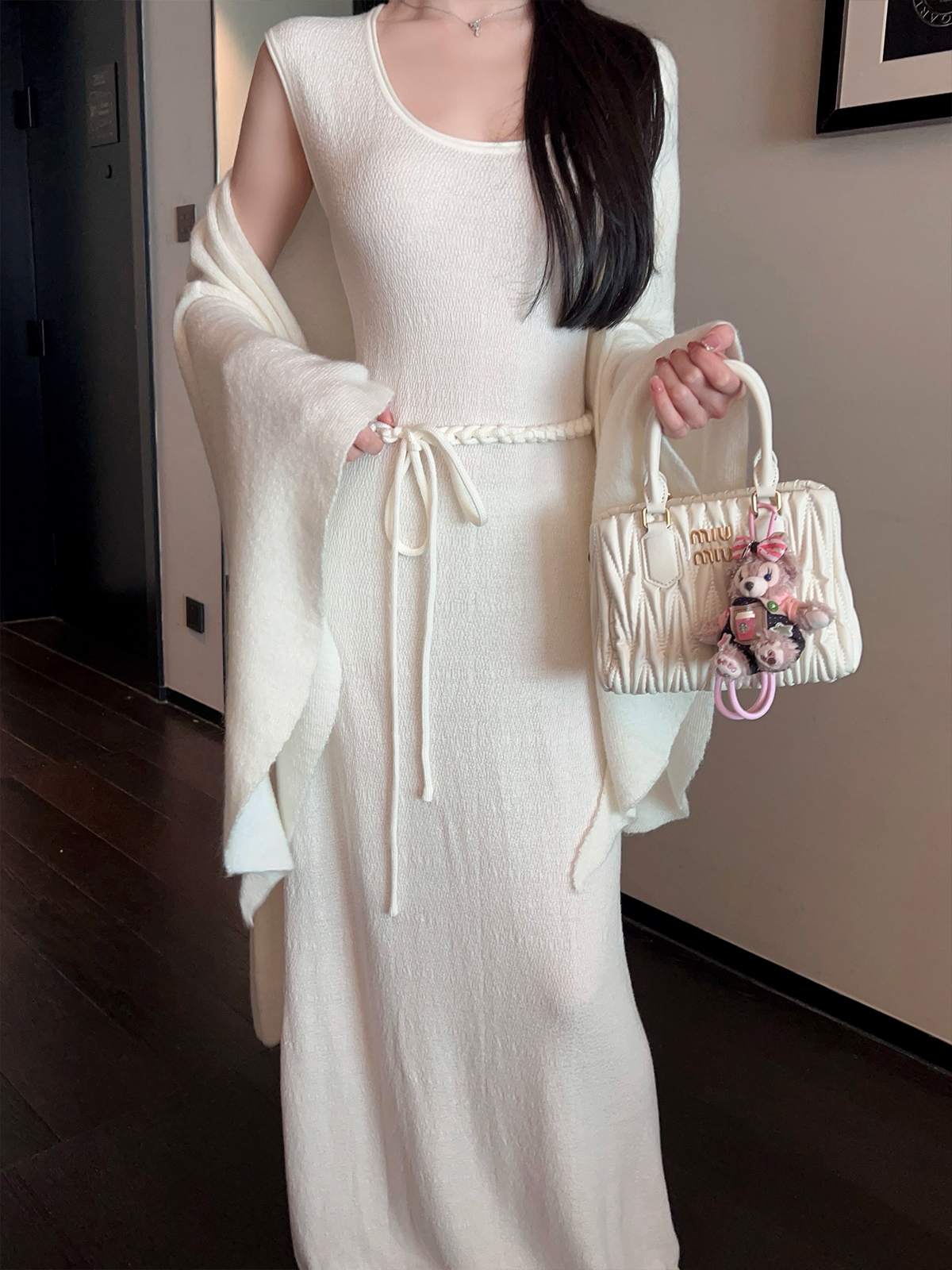 Surprisingly well-made for the price— color accuracy—looks like the photos, Small touch, big difference. Glad I picked Square Neck Sleeveless White Knitted Long Dress Belt Autumn Winter up.
