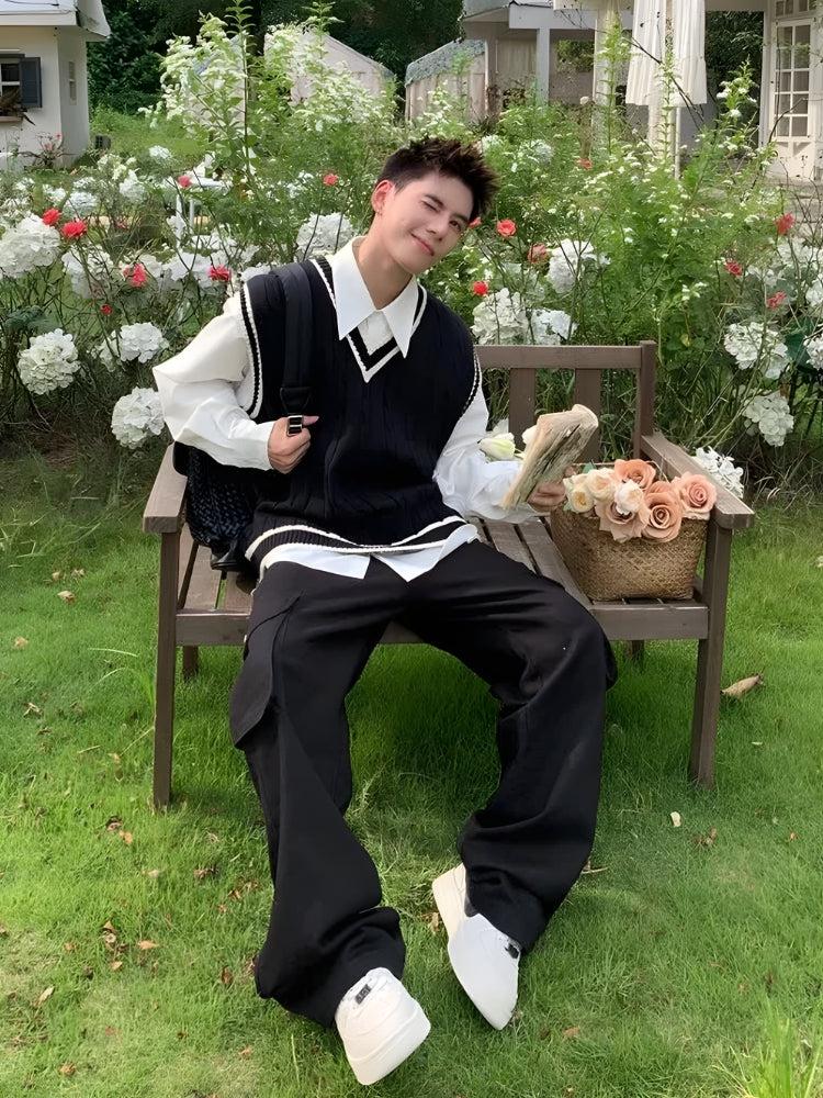 The College Knit Sweater Vest is a versatile layering piece for a smart, timeless look. Its sleeveless design pairs effortlessly with button-downs or casual tees, perfect for achieving an academic-inspired style with a modern edge.