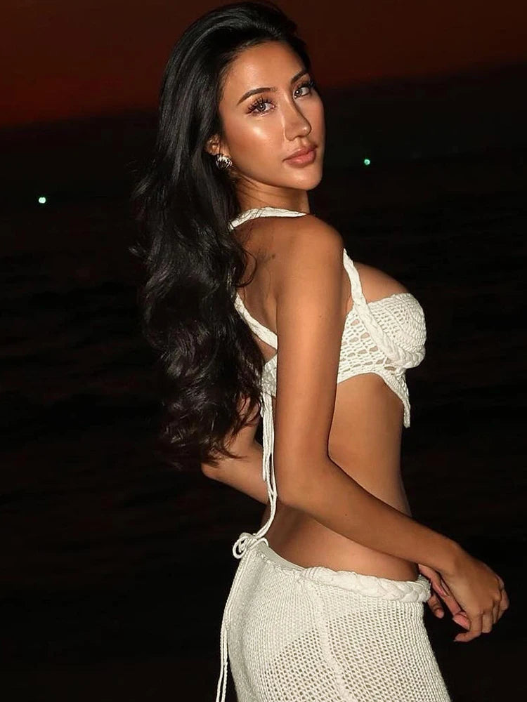 Channel coastal goddess vibes in this stunning two-piece crochet set. Designed with a sculpted sweetheart neckline crop top and a body-hugging maxi skirt, it’s perfect for sunset strolls or beachside brunches.