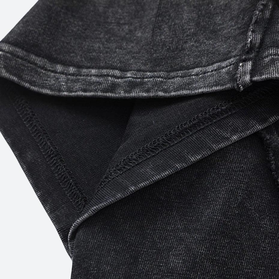 Step into the future with the Cyberpunk Patchwork Tee—a sleek, black washed tee built with panel seam detailing and futuristic streetwear vibes. Its sculpted stitch design and minimal chest emblem give off serious dystopian-core energy. A must-have for your cyber-grunge fits.