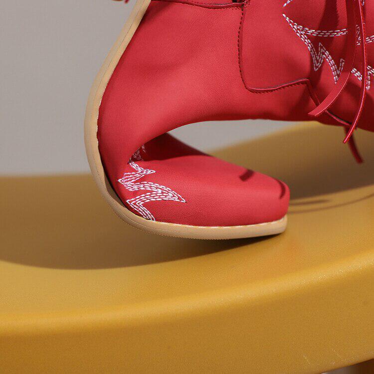 Channel the disco era with a cowgirl twist with these Fringe Ankle Boots. Adorned with western patterns, the faux leather boots are a striking sight. The fringes at the back add an extra element of playfulness. With their stretchable material and thick heels, they’re as comfortable as they are stylish.