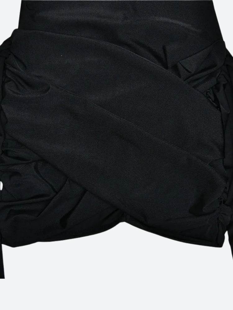 Own the night in this draped bodycon mini dress. A high neckline and curve-hugging silhouette keep it sleek, while side ruching adds edgy style for clubs or date nights.