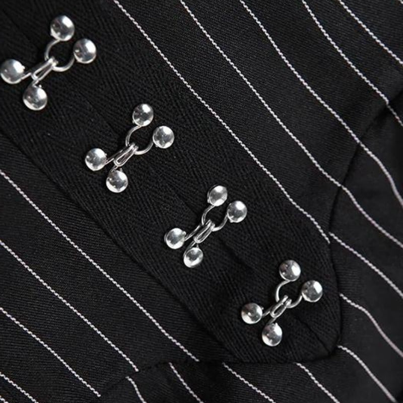 This dress features a fitted bodice with lace trim and hook-and-eye detailing down the front, adding a touch of gothic allure. The ruffled skirt adds volume and movement, creating a dramatic silhouette. Whether you’re heading to a night out or a special event, this dress ensures you stand out with its unique, dark aesthetic.