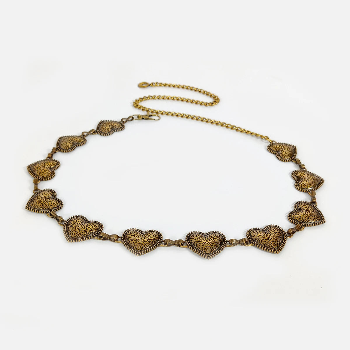 The Heart Belly Chain adds a touch of charm to any outfit with its intricately designed heart-shaped accents. Made from durable materials, this belt is both stylish and functional. The adjustable chain allows for a customized fit, making it a versatile accessory for various looks, from casual to chic. Ideal for adding a unique detail to your wardrobe essentials.