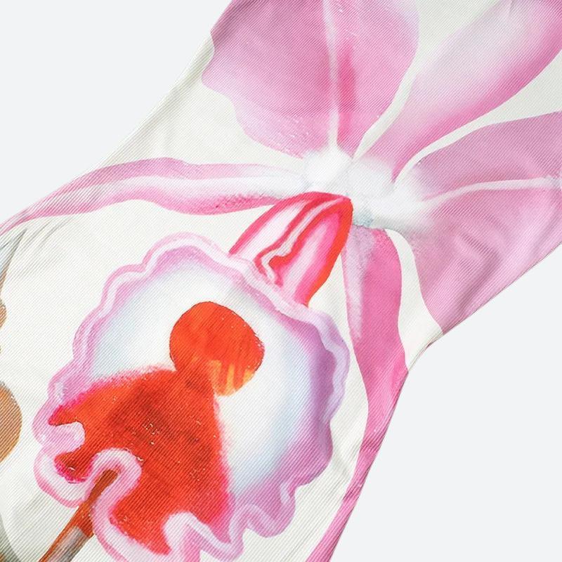 The Maruja Mallo Split Maxi Dress captivates with a unique print inspired by Maruja Mallo’s art, showcasing seashells and flowers on soft corduroy. This bodycon dress with a high neck and back split is a tribute to art lovers, perfect for summer outings and casual art events.