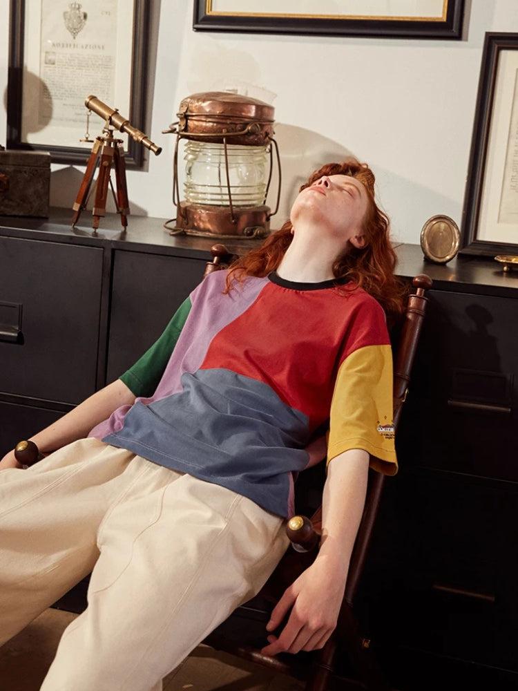 Make a bold statement with this vibrant patchwork tee. Its relaxed fit and unique color block design bring an artistic flair to your casual wardrobe. Ideal for laid-back outings or creative expressions.