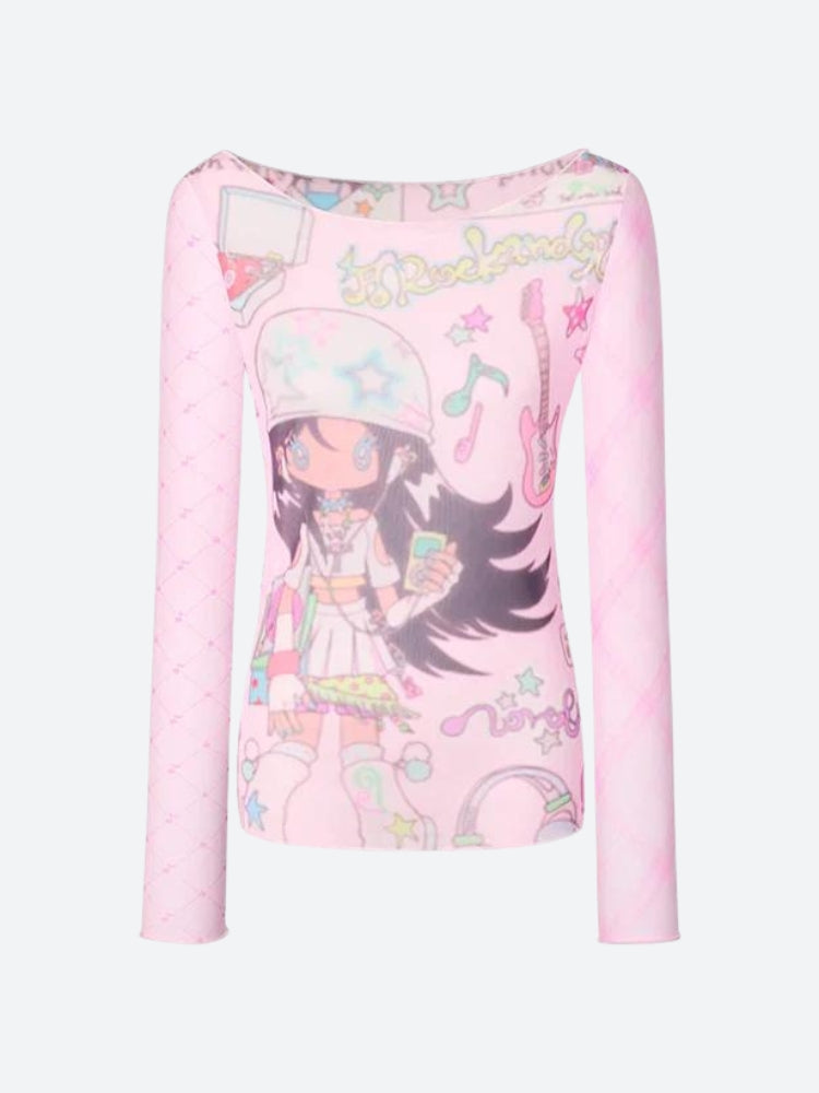 The Kawaii Candy Pink Mesh Top brings playful vibes to your wardrobe with its pastel tones and whimsical graphics. This semi-sheer, long-sleeve top is perfect for layering or wearing alone, offering a soft, lightweight feel that’s comfortable for any season. The vibrant print adds a touch of nostalgia, making it a standout piece for those who love kawaii fashion.