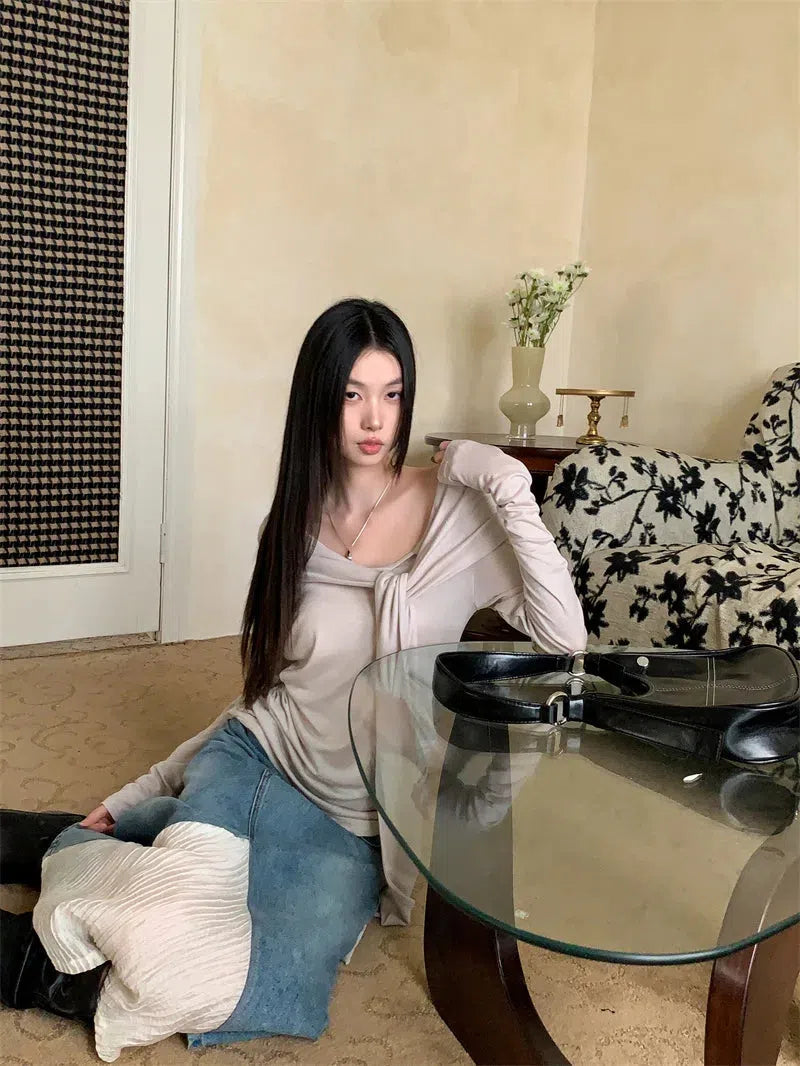 This tie-front one-shoulder top blends elegance with a relaxed edge. The draped design creates a flattering silhouette, while the soft, stretch fabric offers comfort. Pair it with high-waisted denim or a sleek skirt for a refined yet effortless look.