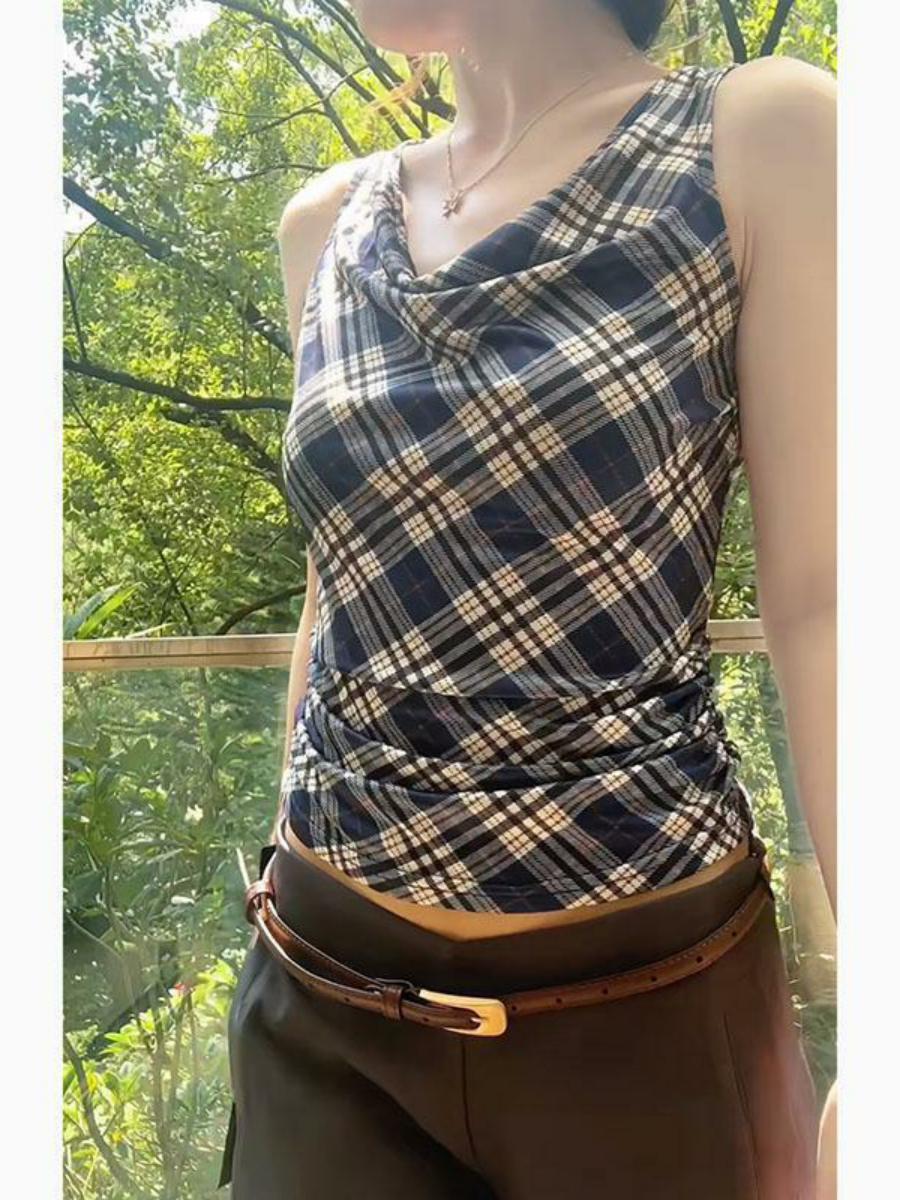Summer Retro Plaid Camisole Women Sweet Spicy Slim Fit Short Top in High-quality product featuring fall outfits women, warm fall outfits, fall fits and more. Modern design that fits the latest trends. Premium materials ensure durability and comfort. Order now for special offers! Product designed with attention to every detail. Suitable for all occasions and personal styles.