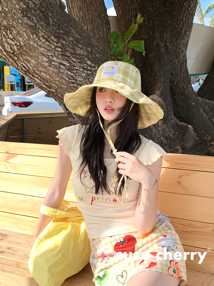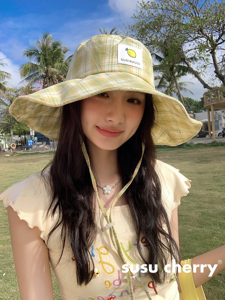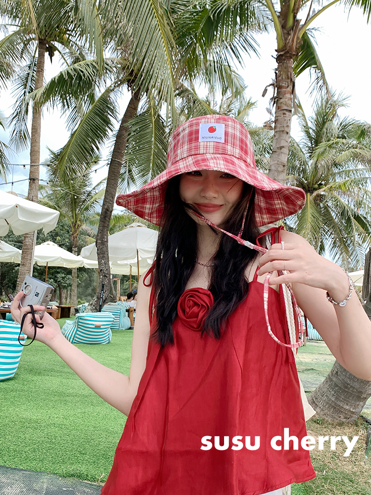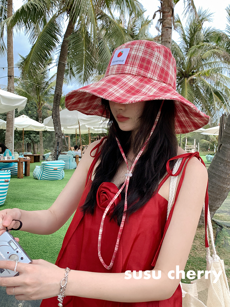 Summer Fresh Fruit Patch Red Checkered Wide Brim Fisherman Hat Women Y2K Sun Protection Spring, Summer Travel High-quality product featuring vacation outfits, casual summer outfits, y2k outfits and more. Modern design that fits the latest trends. Premium materials ensure durability and comfort. Order now for special offers! Product designed with attention to every detail. Suitable for all occasions and personal styles.