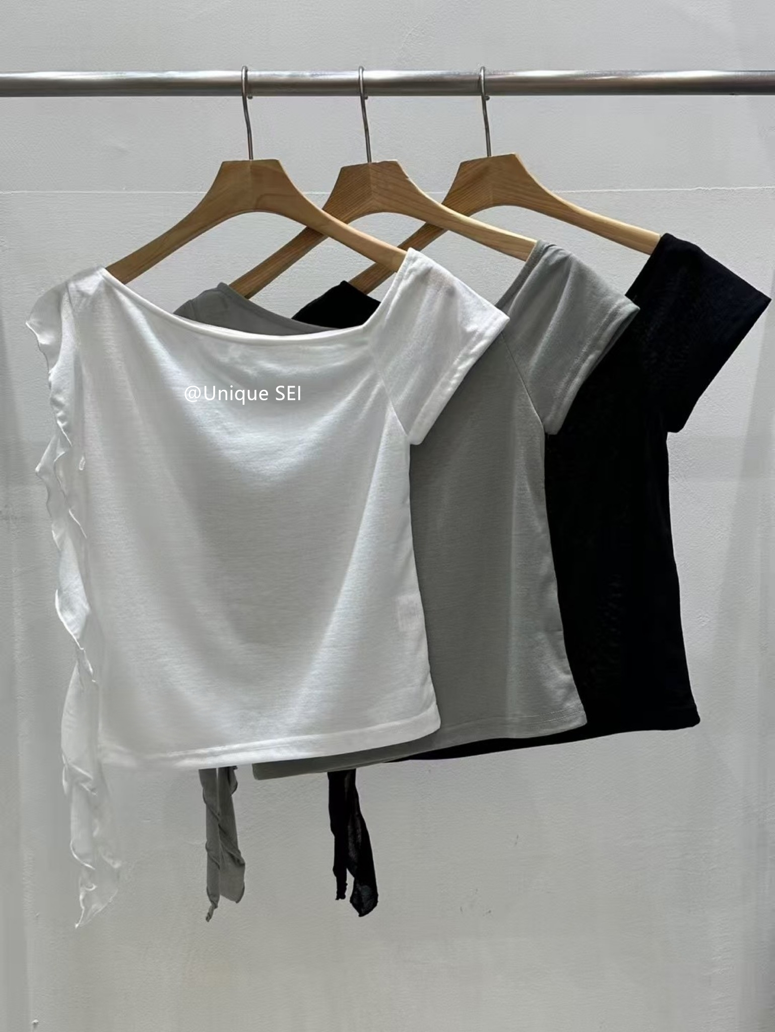 Elevate your summer wardrobe with our Summer Off-Shoulder Flowing Ribbon T-Shirt, designed for the modern woman who loves comfort and style. This soft, irregularly cut tee features a flattering off-shoulder design and slimming short sleeves, channeling a chic 90s vibe that effortlessly enhances your silhouette. Perfect for casual outings or beach days, this versatile top is a must-have for any fashionista. Don’t miss out on this stylish essential add it to your cart today!