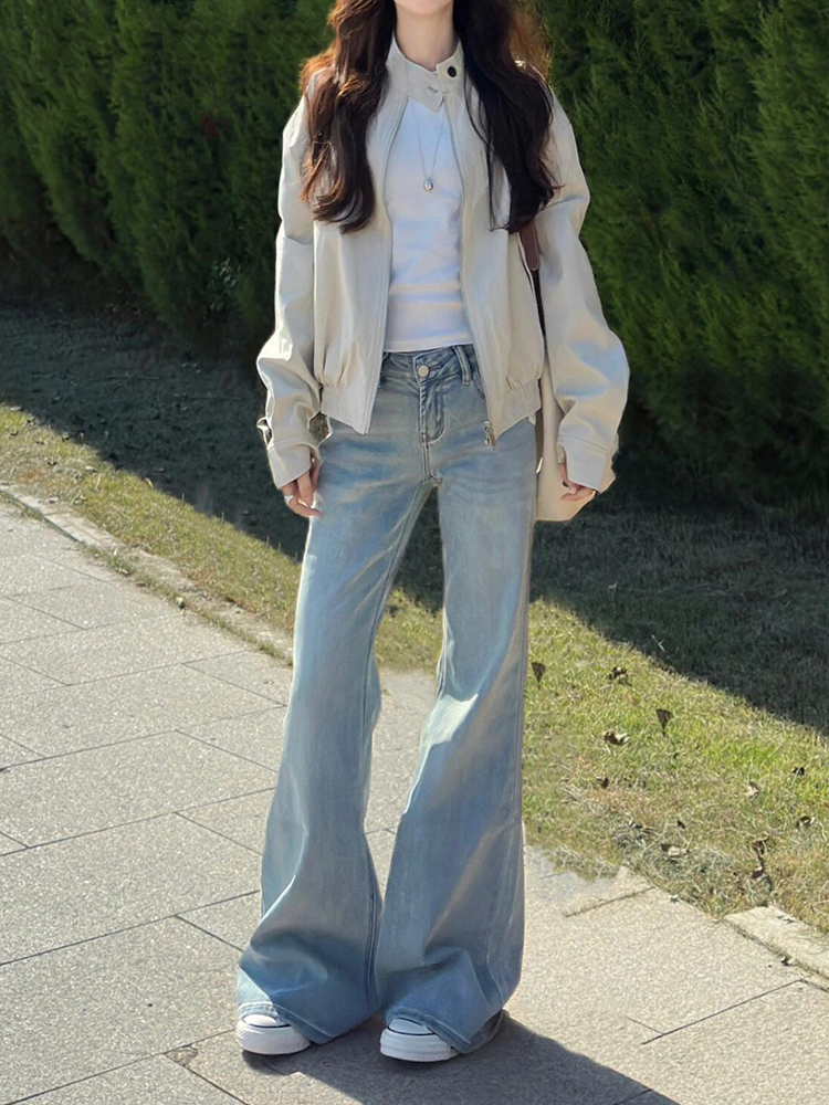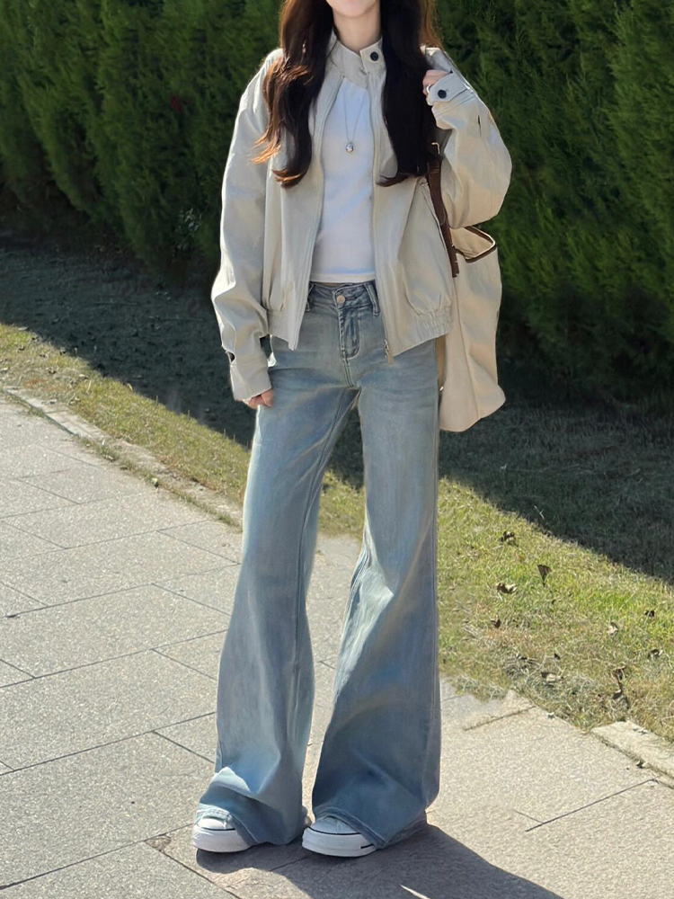Summer Retro Light Flared Jeans Women Low WaiStretchy Wide Leg Slim Straight Pants High-quality product featuring casual summer outfits, outfit inspo, spring outfit and more. Modern design that fits the latest trends. Premium materials ensure durability and comfort. Order now for special offers! Product designed with attention to every detail. Suitable for all occasions and personal styles.