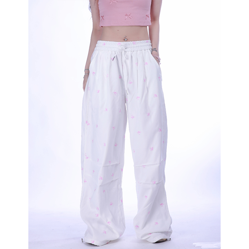 Sweet, Spicy Wide Leg Pants Women Summer Casual Drawstring Pleated Bow Embroidery Long High-quality product featuring casual summer outfits, summer fits, easy costumes women and more. Modern design that fits the latest trends. Premium materials ensure durability and comfort. Order now for special offers! Product designed with attention to every detail. Suitable for all occasions and personal styles.