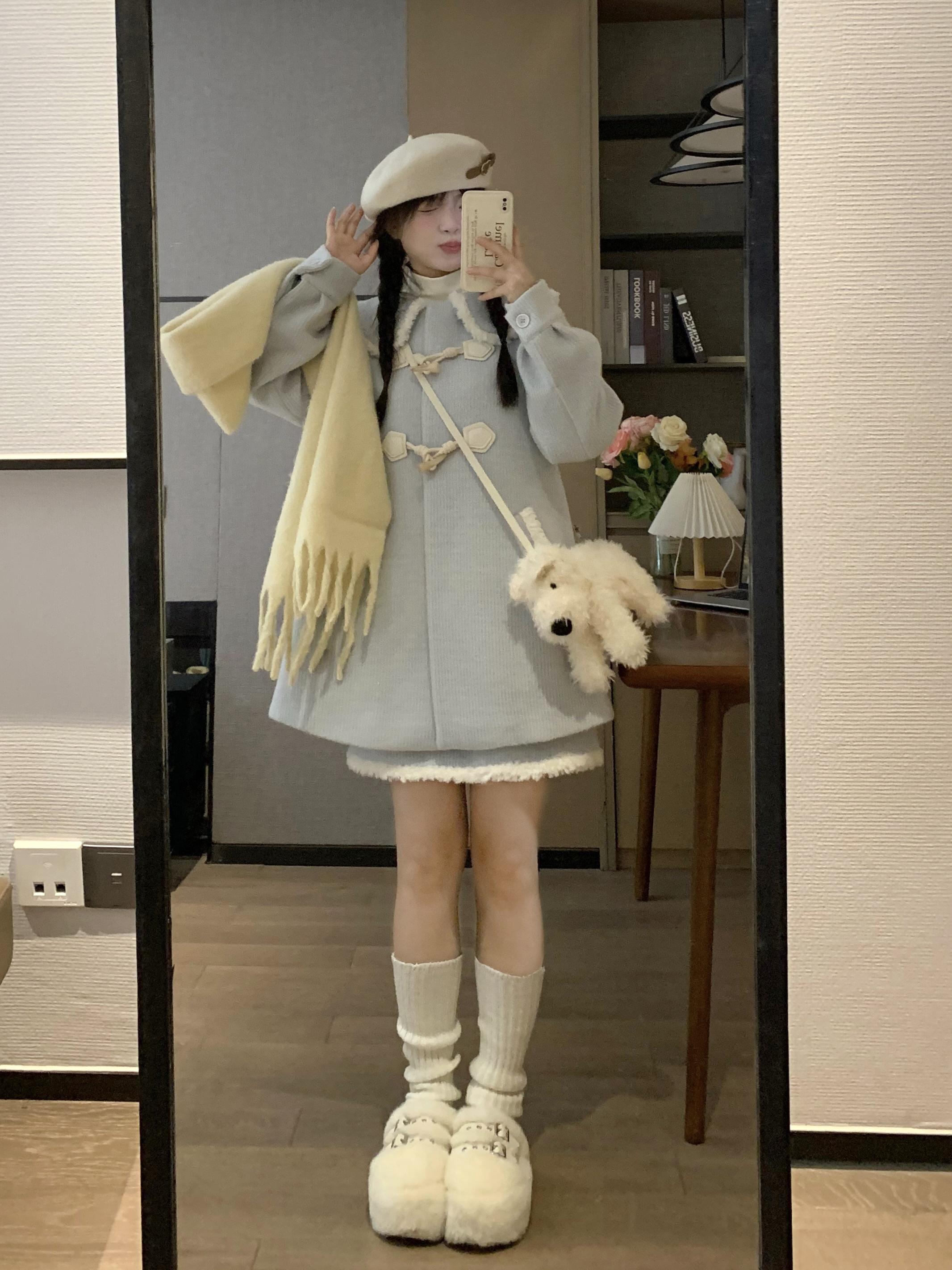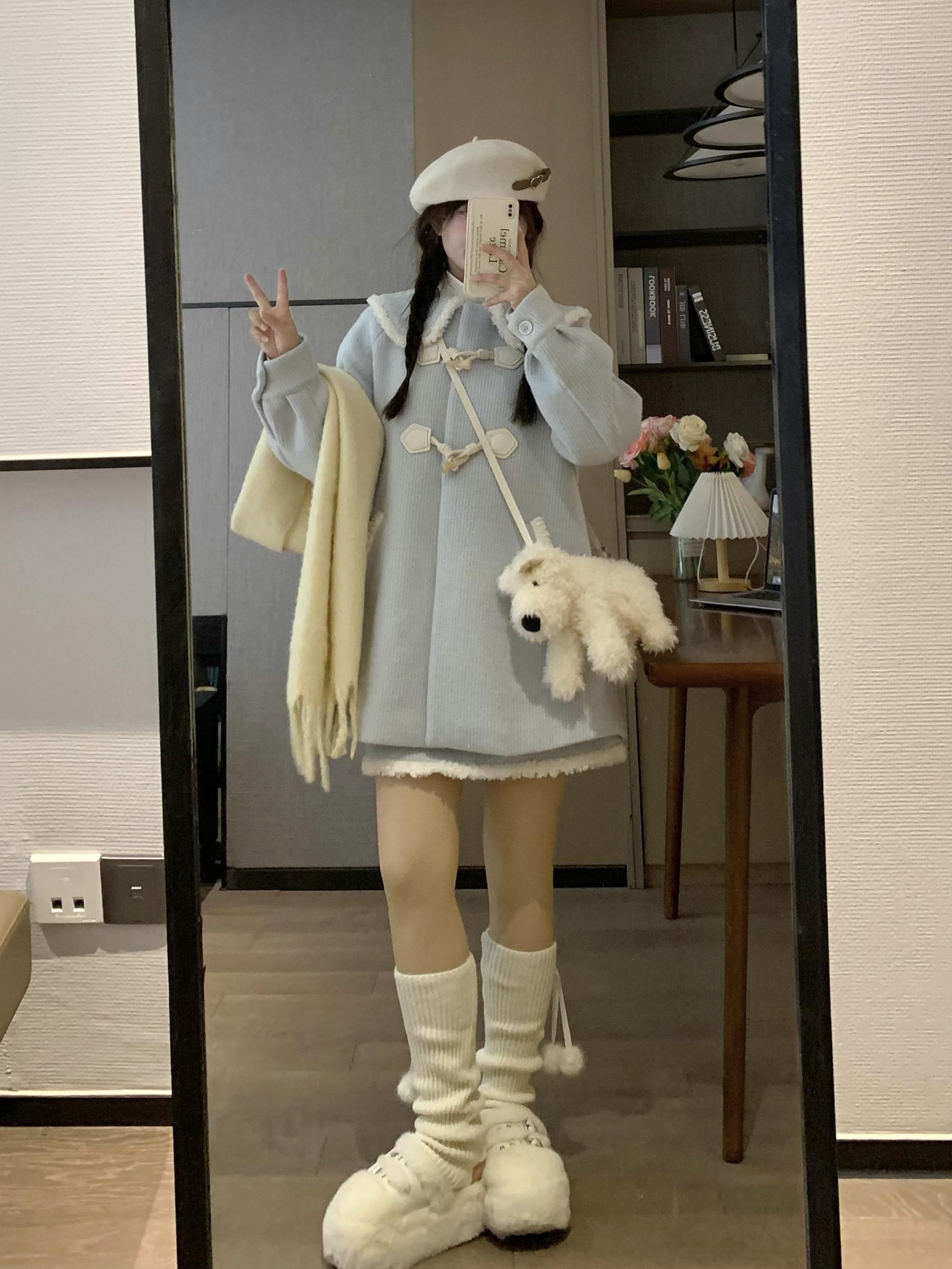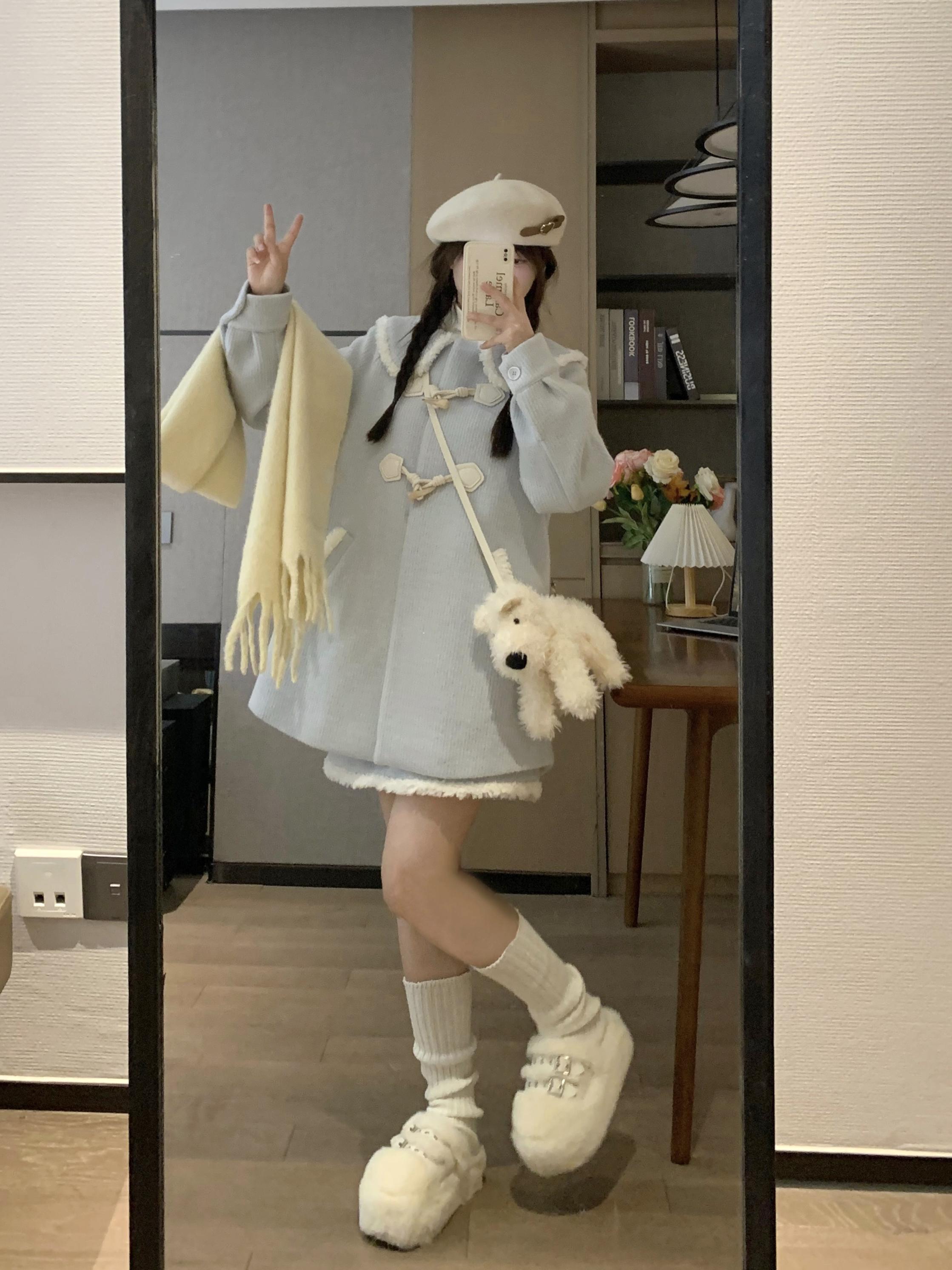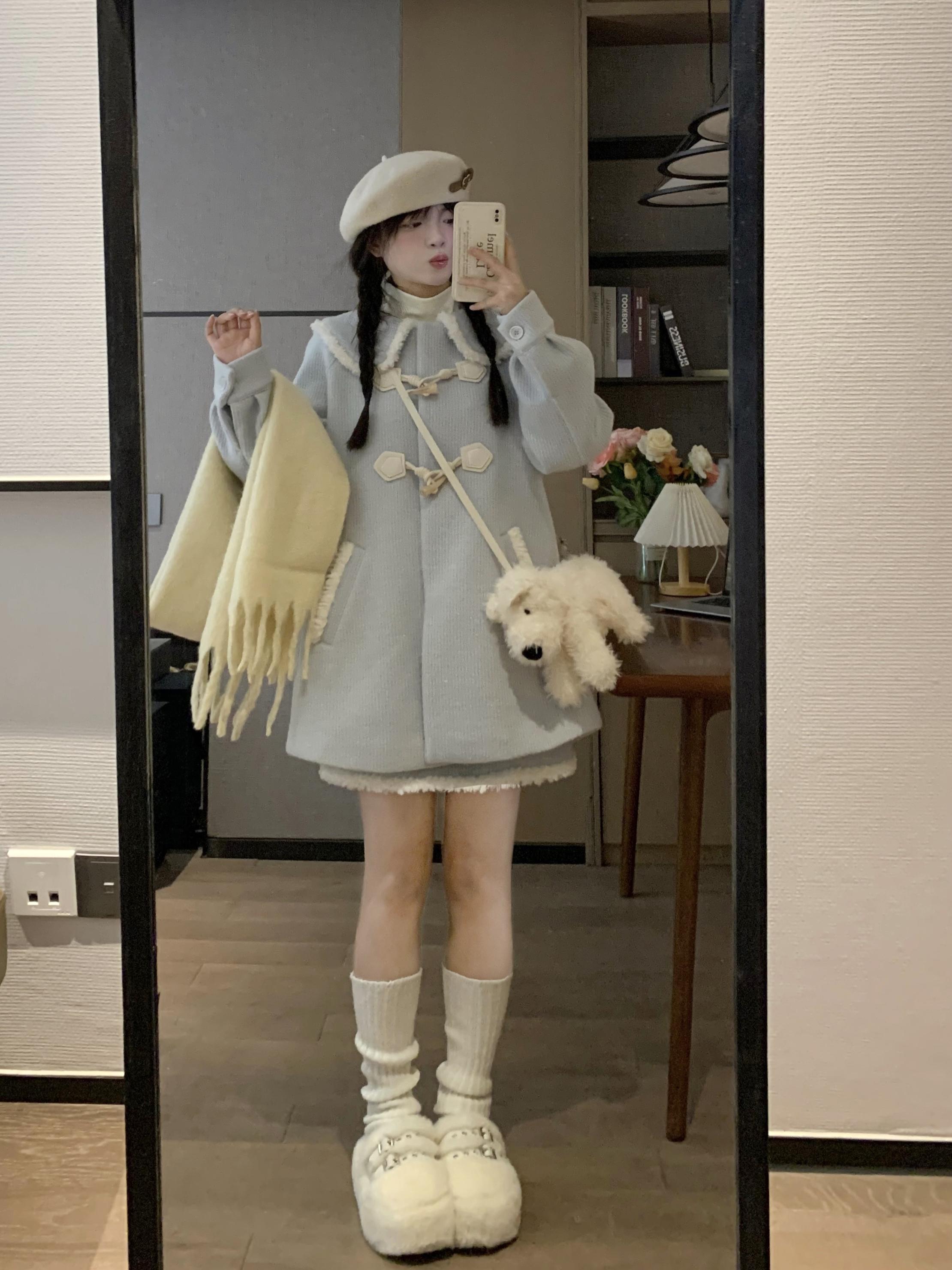 Sweet Spring Korean Girl Blue Cape Coat, Short Set Thick Woolen Outerwear Women High-quality product featuring spring outfits, winter outfit, warm winter outfits and more. Modern design that fits the latest trends. Premium materials ensure durability and comfort. Order now for special offers! Product designed with attention to every detail. Suitable for all occasions and personal styles.