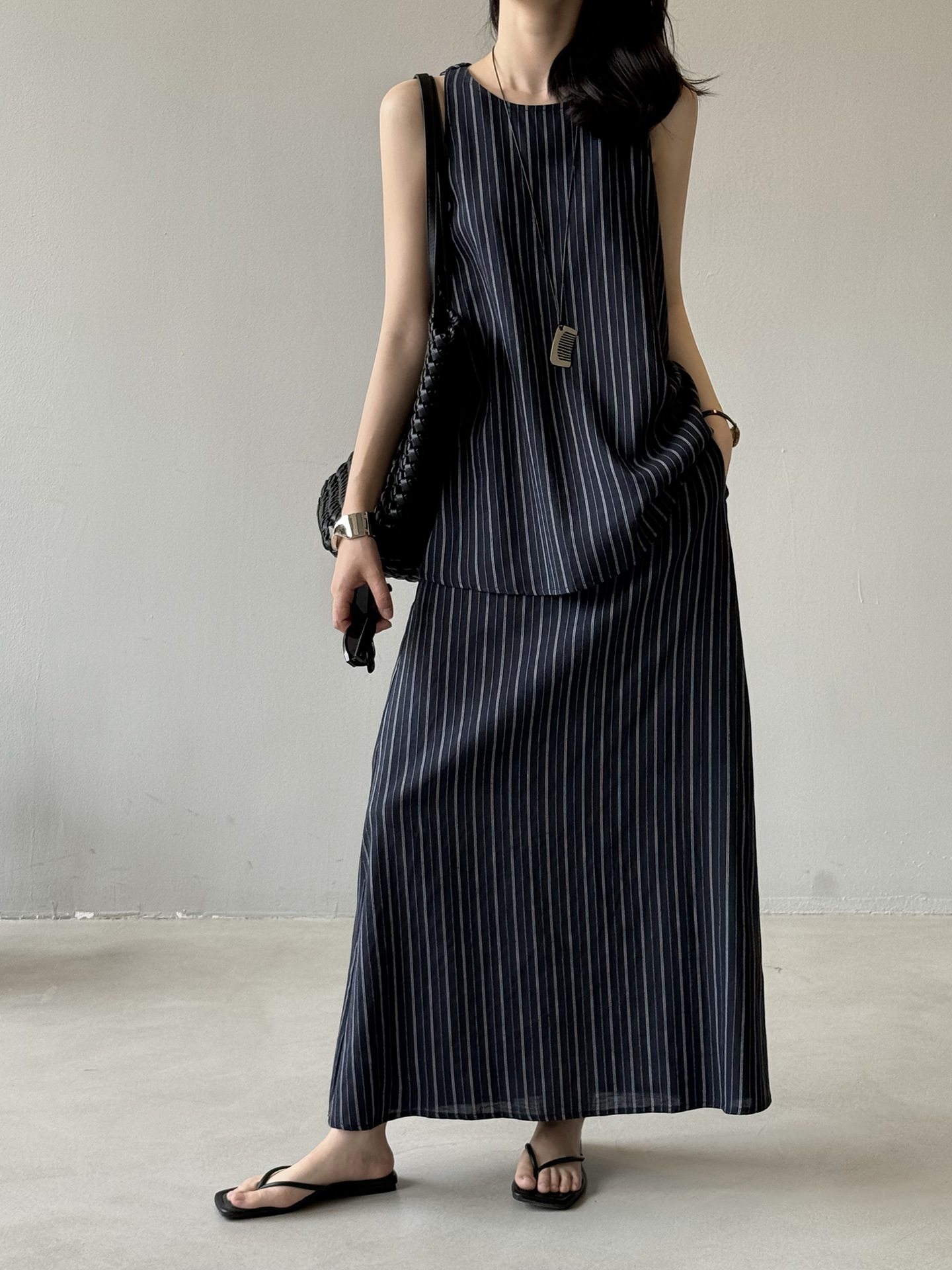 Elevate your summer wardrobe with our Tencel Linen Striped Vest Shirt and Skirt Two-Piece Set, designed for effortless style and comfort. This high-end outfit features a flattering fit that drapes beautifully on all body types, while the breathable Tencel linen blend ensures you stay cool during warm days. The chic striped pattern adds a touch of sophistication, making it perfect for both casual outings and special occasions. Don’t miss out on this must-have ensemble add to your cart today and step into summer with confidence!