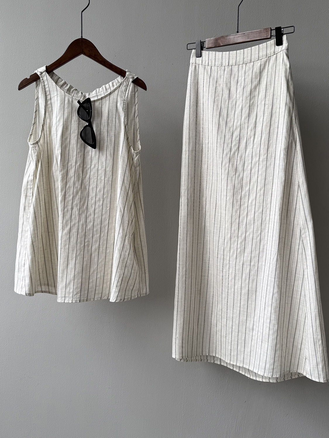 Tencel Linen Striped V Shirt, Skirt Two Set Summer Outfit High-quality product featuring vacation outfits, skirt outfits, going out outfits and more. Modern design that fits the latest trends. Premium materials ensure durability and comfort. Order now for special offers! Product designed with attention to every detail. Suitable for all occasions and personal styles.