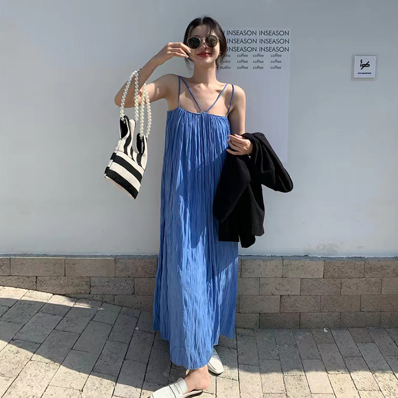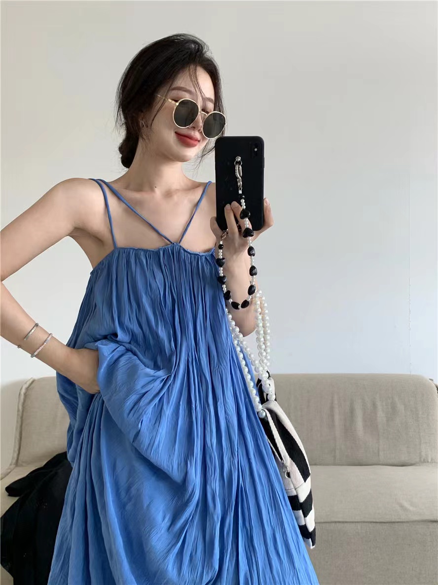 Blue Pleated Maxi Dress Women Summer Camisole Outfit High-quality product featuring casual summer outfits, pretty outfits, going out outfits and more. Modern design that fits the latest trends. Premium materials ensure durability and comfort. Order now for special offers! Product designed with attention to every detail. Suitable for all occasions and personal styles.