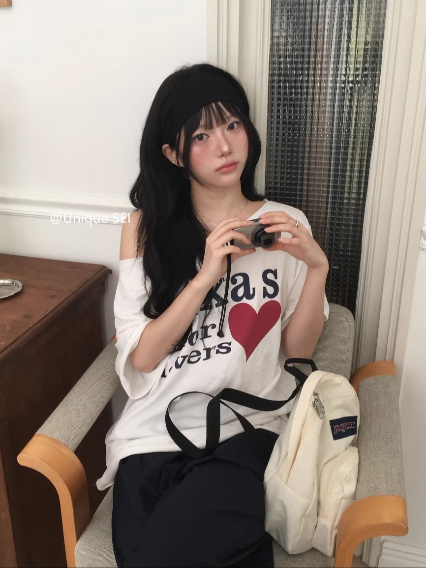 Elevate your summer wardrobe with our Unique Korean Style Summer Off-Shoulder Heart Letter T-Shirt, designed for a relaxed yet chic look. Featuring loose short sleeves and a playful heart graphic, this top pairs perfectly with our casual drawstring pants for an effortlessly stylish outfit. Enjoy ultimate comfort and breathability while making a bold fashion statement. Don’t miss out on this must-have ensemble add it to your cart today!