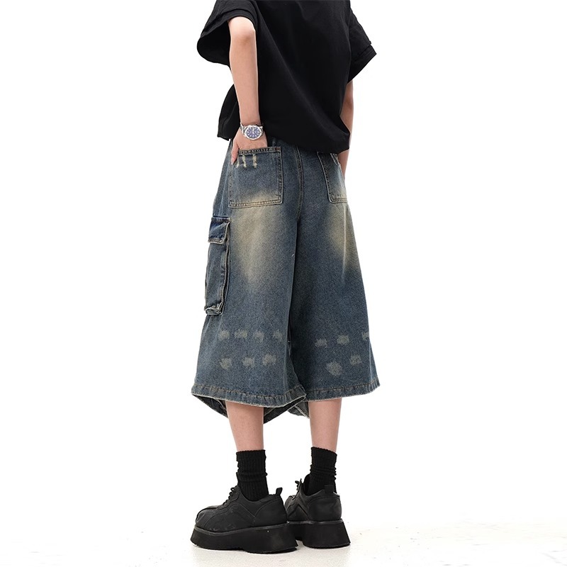 Elevate your summer wardrobe with our Unisex Multi-Pocket Pleated Denim Shorts, designed for comfort and style. These loose straight leg shorts feature a trendy washed and distressed finish, perfect for casual outings or as versatile workwear. With their practical pockets and 7/8 length, they offer both functionality and a laid-back vibe. Don’t miss out on this essential addition to your closet add to your cart today!