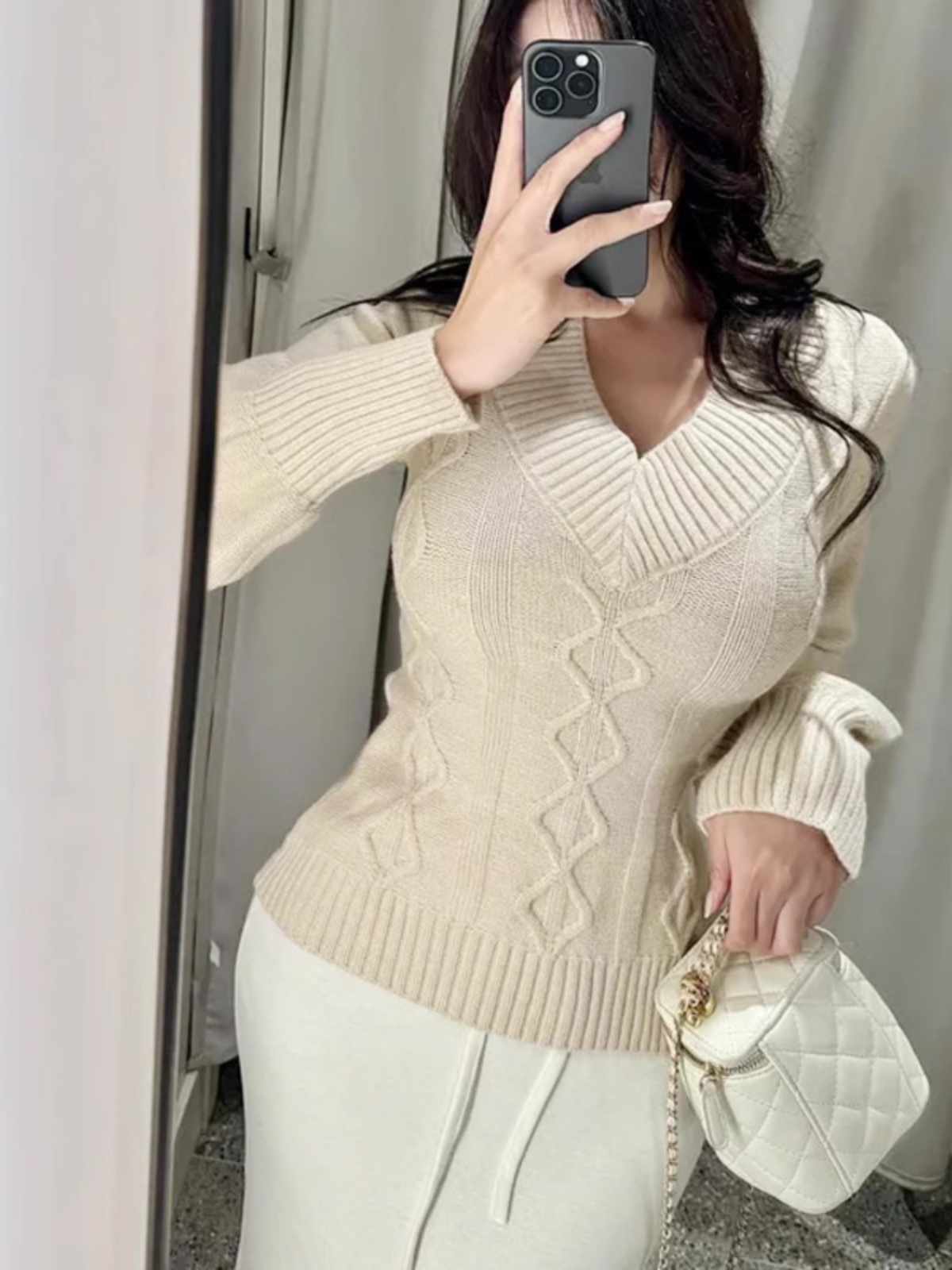 Elevate your autumn and winter wardrobe with our V-Neck Chest-Enhancing Cable Knit Sweater for Women. This slim-fit, waist-cinching pullover is designed to flatter your silhouette while providing warmth and comfort. The intricate cable knit pattern adds a touch of niche aesthetic fashion, making it a perfect choice for layering or wearing solo. Don’t miss out on this essential piece that combines style and functionality add to your cart today!