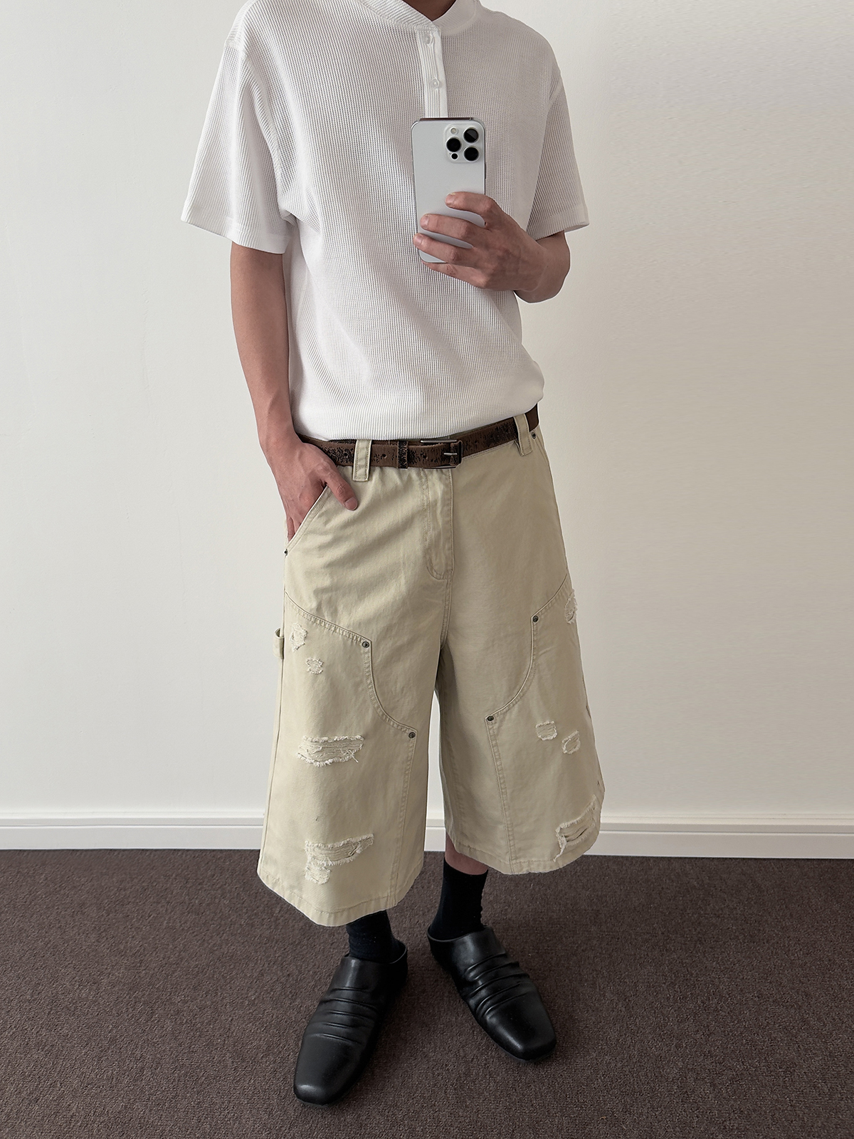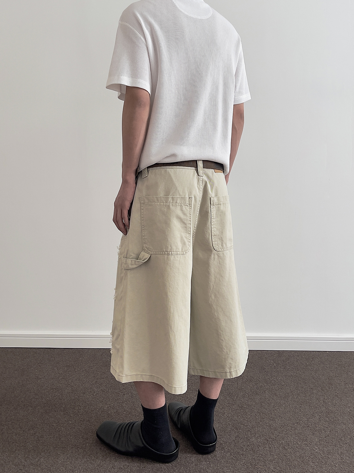 Elevate your summer wardrobe with our Vintage American Distressed Ripped Work Shorts, designed for the ultimate laid-back look. Featuring a boxy cut and loose fit, these 7-point length shorts offer both comfort and style, perfectly capturing the essence of Y2K fashion. The distressed details add a unique touch, making them ideal for casual outings or weekend adventures. Don’t miss out on a staple piece that combines functionality with vintage flair add to your cart today!