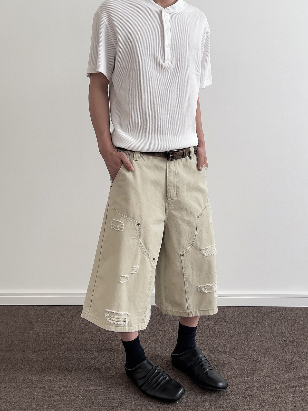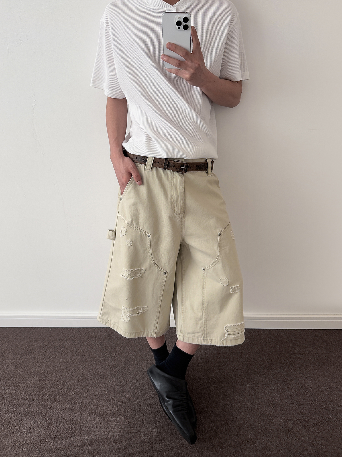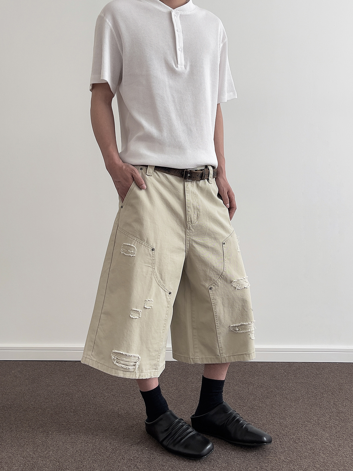Vintage Ripped Work Shorts Boxy Cut, Loose Fit, 7 Point Length, Y2K pired High-quality product featuring 90s fashion, last minute halloween costume, work outfits women and more. Modern design that fits the latest trends. Premium materials ensure durability and comfort. Order now for special offers! Product designed with attention to every detail. Suitable for all occasions and personal styles.
