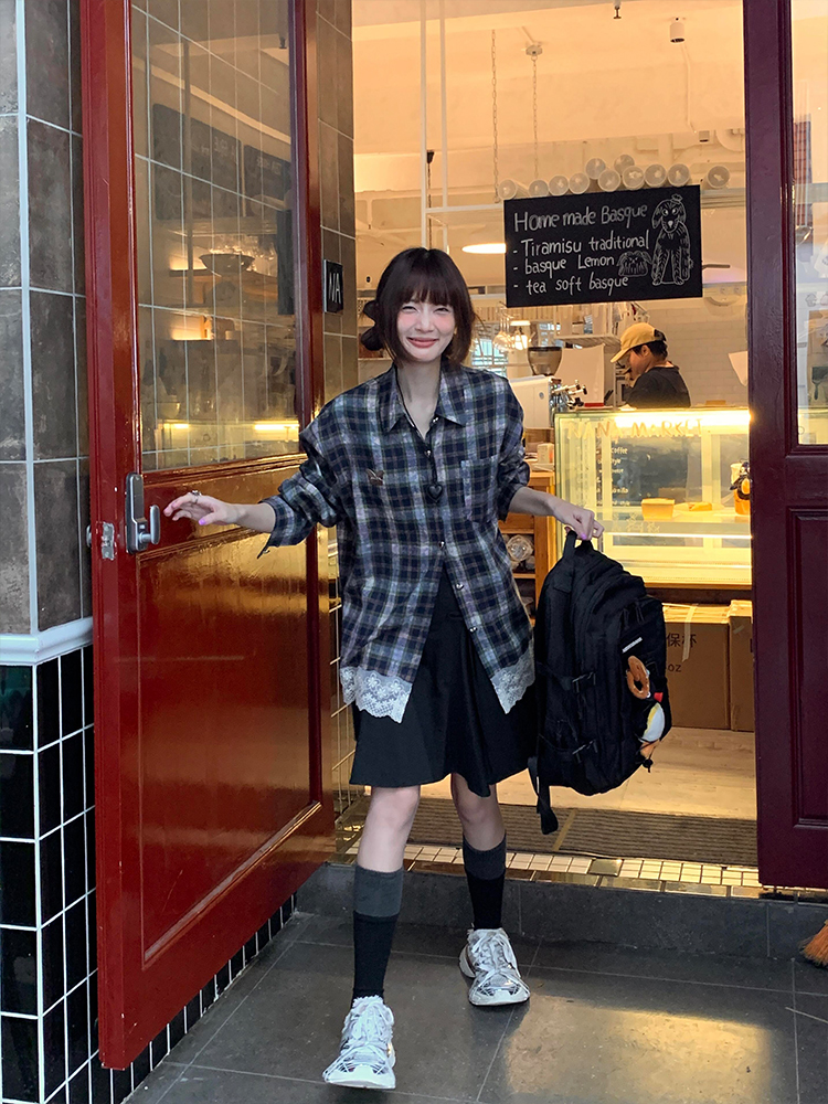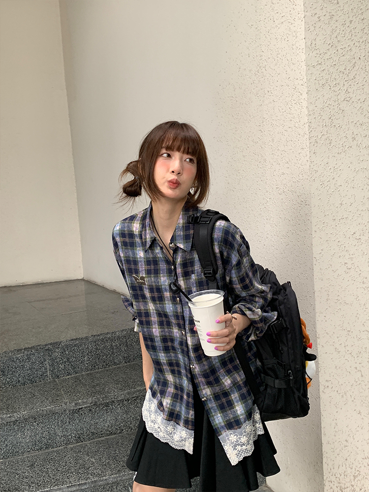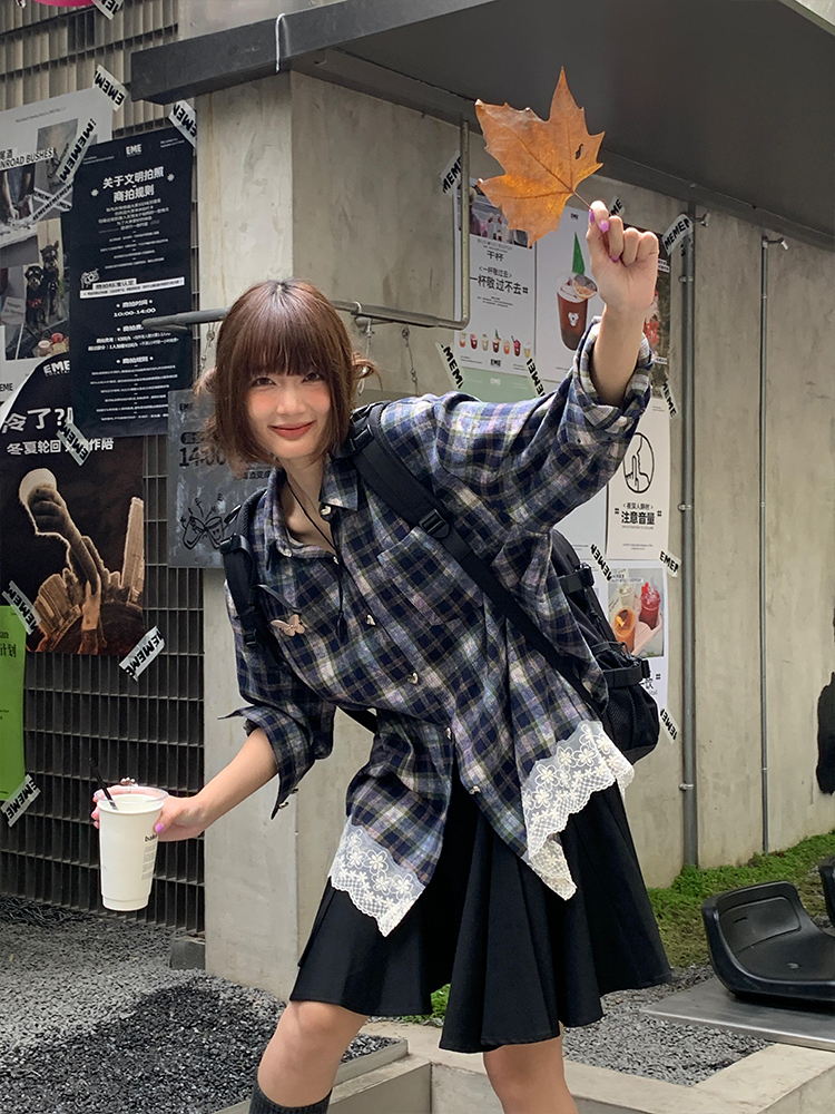 Elevate your autumn wardrobe with our Vintage American Plaid Long Sleeve Lace Spliced Shirt, designed for the eccentric spicy girl! This loose-fit top features a unique lace splice detail that adds a touch of femininity to the classic plaid pattern, creating a slimming silhouette perfect for any occasion. Embrace comfort and style as you step out in confidence add this must-have piece to your cart and make a bold fashion statement today!
