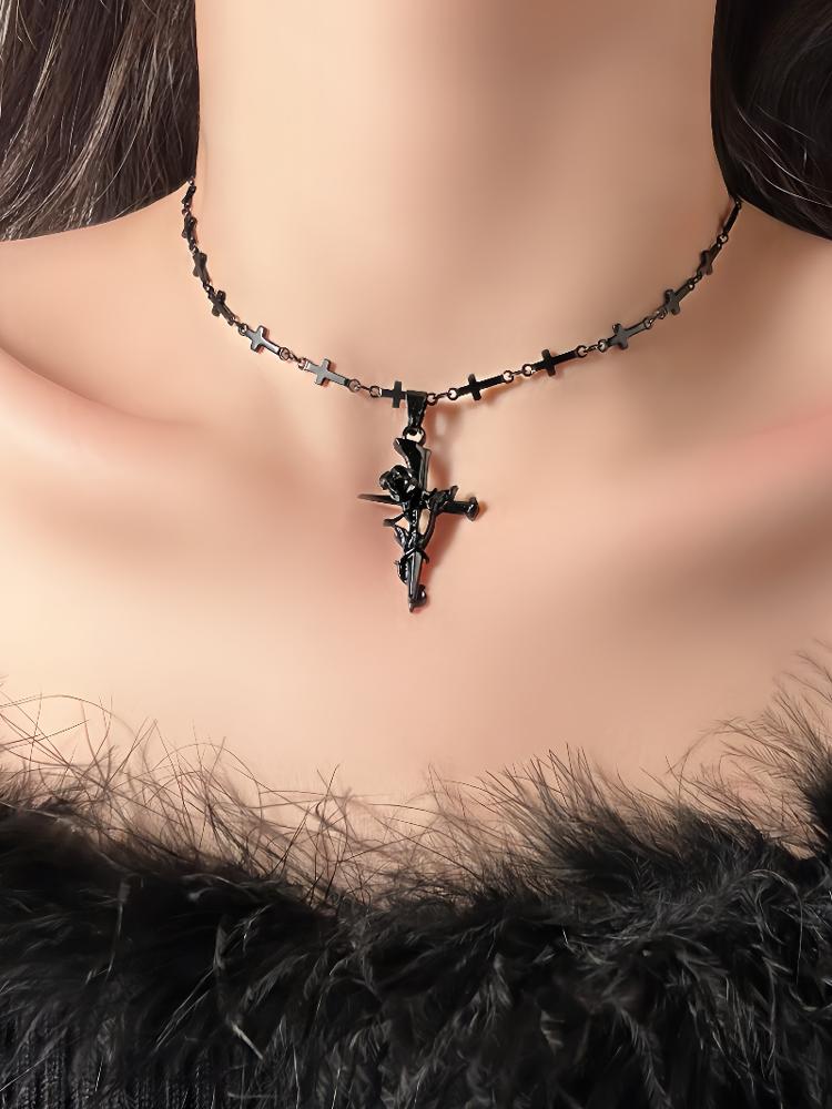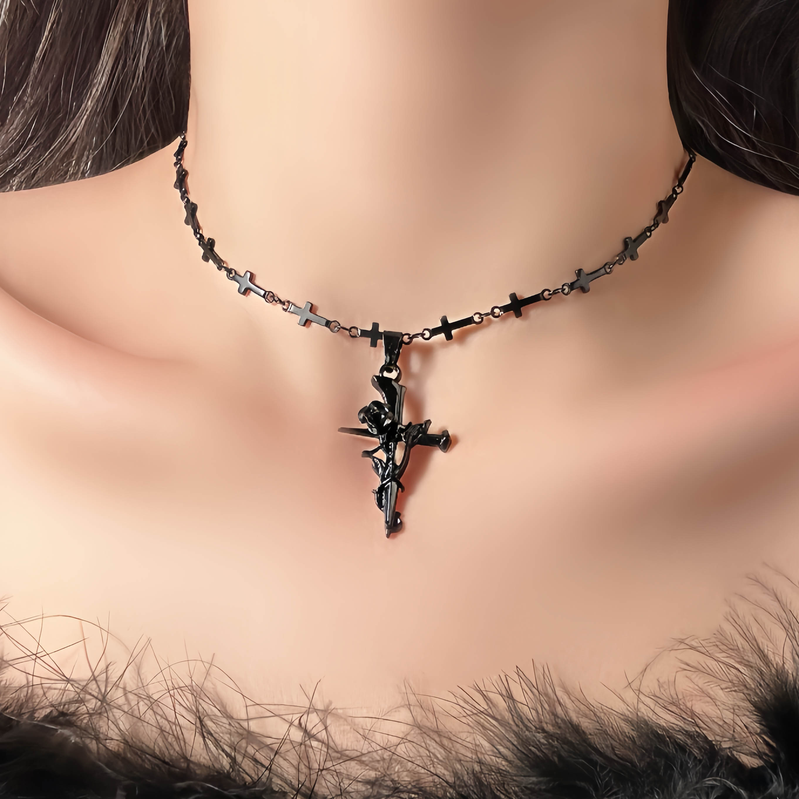 Elevate your accessory game with our Vintage Dark Cross Thorn Rose Choker Necklace, designed for women who embrace a sweet yet spicy style. This stunning collar jewelry features intricate thorn and rose details, adding a unique edge to any outfit while ensuring a comfortable fit for all-day wear. Perfect for layering or making a statement on its own, this choker is a must-have addition to your collection. Don’t miss out on this exquisite piece add it to your cart today!